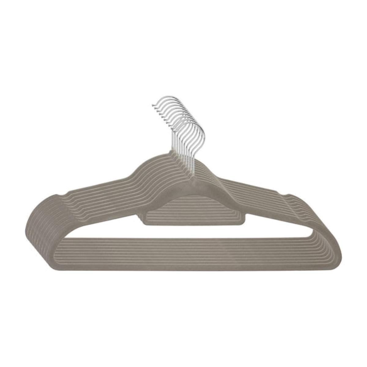 * Set of 10 * Available in a range of colours * Slim design to save space Upgrade your wardrobe with our Set of 10 Flocked Hangers—an essential for keeping your clothes looking their best. The soft velvet surface prevents slipping, while the gentle curves are kind to your garments, preserving their natural shape. Designed to save space with their slim profile, they’re perfect for making room for all your favourites. The 360-degree swivel metal hook adds a touch of practicality, making hanging effortless from any angle. Available in a range of colours, these hangers are as stylish as they are functional. Keep your wardrobe organised, neat, and effortlessly chic.