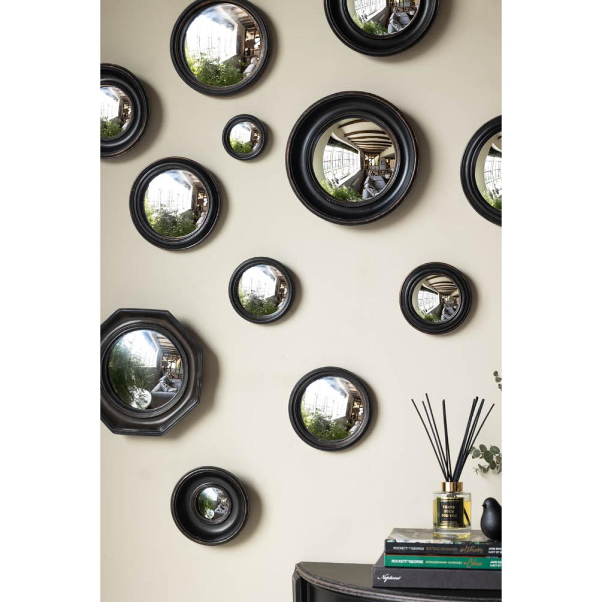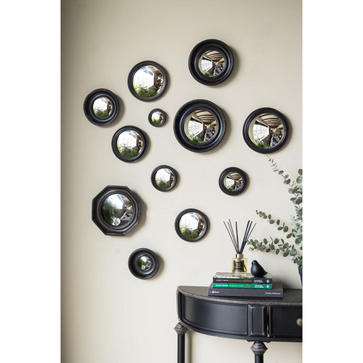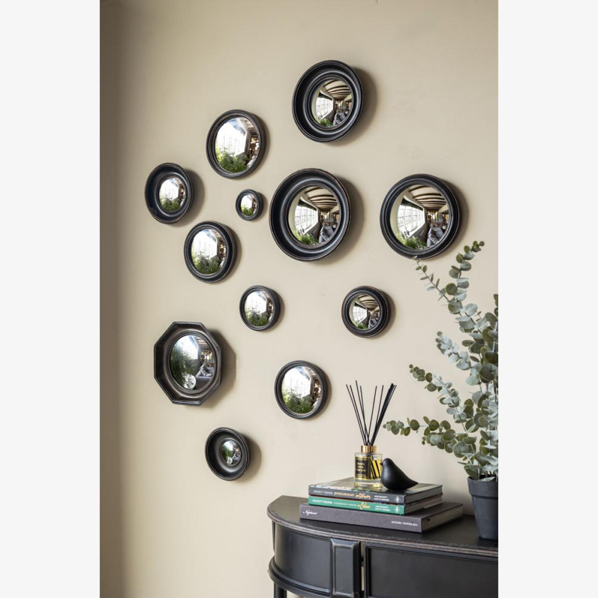 <!--td --> The Set of 12 Black Convex Framed Mirrors is a sophisticated collection that brings a contemporary style to any space. Each mirror in this set is elegantly framed in different styles: some sleek and thin, others featuring bold, thick rims, and others showcasing striking hexagonal shapes. This versatile set offers endless possibilities for decorating your home. Arrange them together on a wall to create a beautiful mirrored art piece. Alternately, scatter them throughout your home for a cohesive, stylish touch that ties your décor together seamlessly. Made with attention to detail, these mirrors are more than just functional pieces; they are smart accents that elevate your home’s overall aesthetic. Bring a touch of elegance and continuity to your living space with this diverse Set of 12 Black Convex Framed Mirrors.- Set of 12 Black Convex Framed Mirrors - Measures: W25cm x H25cm x D4cmW9.5cm x H9.5cm x D2cmW13.5cm x H13.5cm x D2cmW17cm x H17cm x D2cmW21cm x H21cm x D2.5cmW14cm x H14cm x D3cmW19cm x H19cm x D3cmW23cm x H23cm x D3cmW16cm x H16cm x D4cmW19cm x H19cm x D4cmW23cm x H23cm x D4cmW26.5cm x H26.5cm x D4cm - Material: Resin
