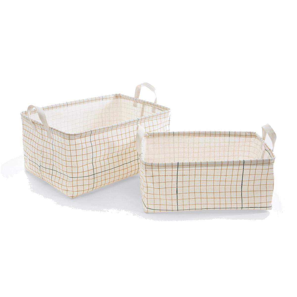 The Acao storage basket has a modern, graphic check print and is great for tidying away your things. Product Details • 100% polycotton • Coated interior (washable) • 2 handles • Pack of 2. Care Advice • Hand wash • Do not exceed 40°CDimensions • Size 1: L35 x H15 x L25cm • Size 2: L40 x H20 x L30cm