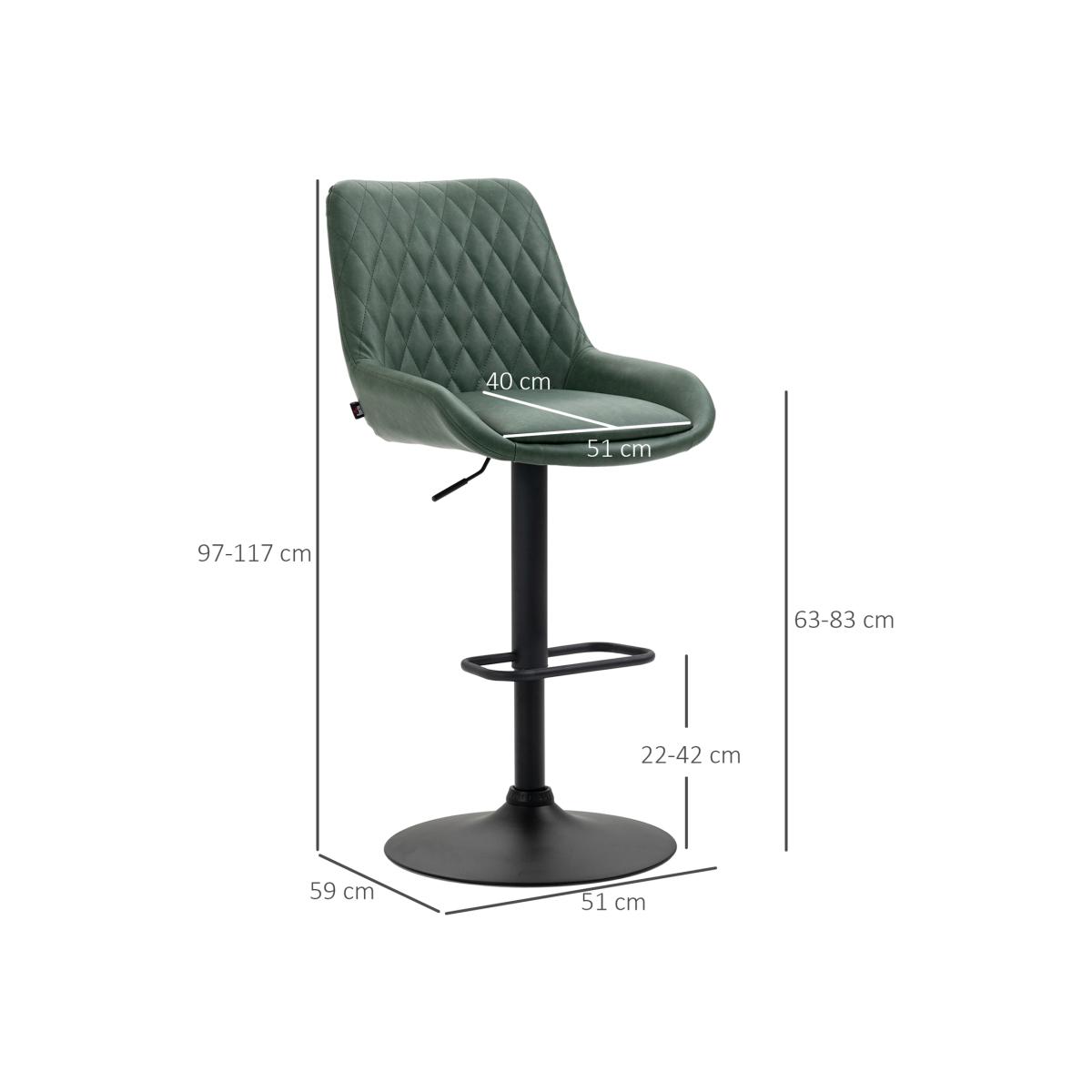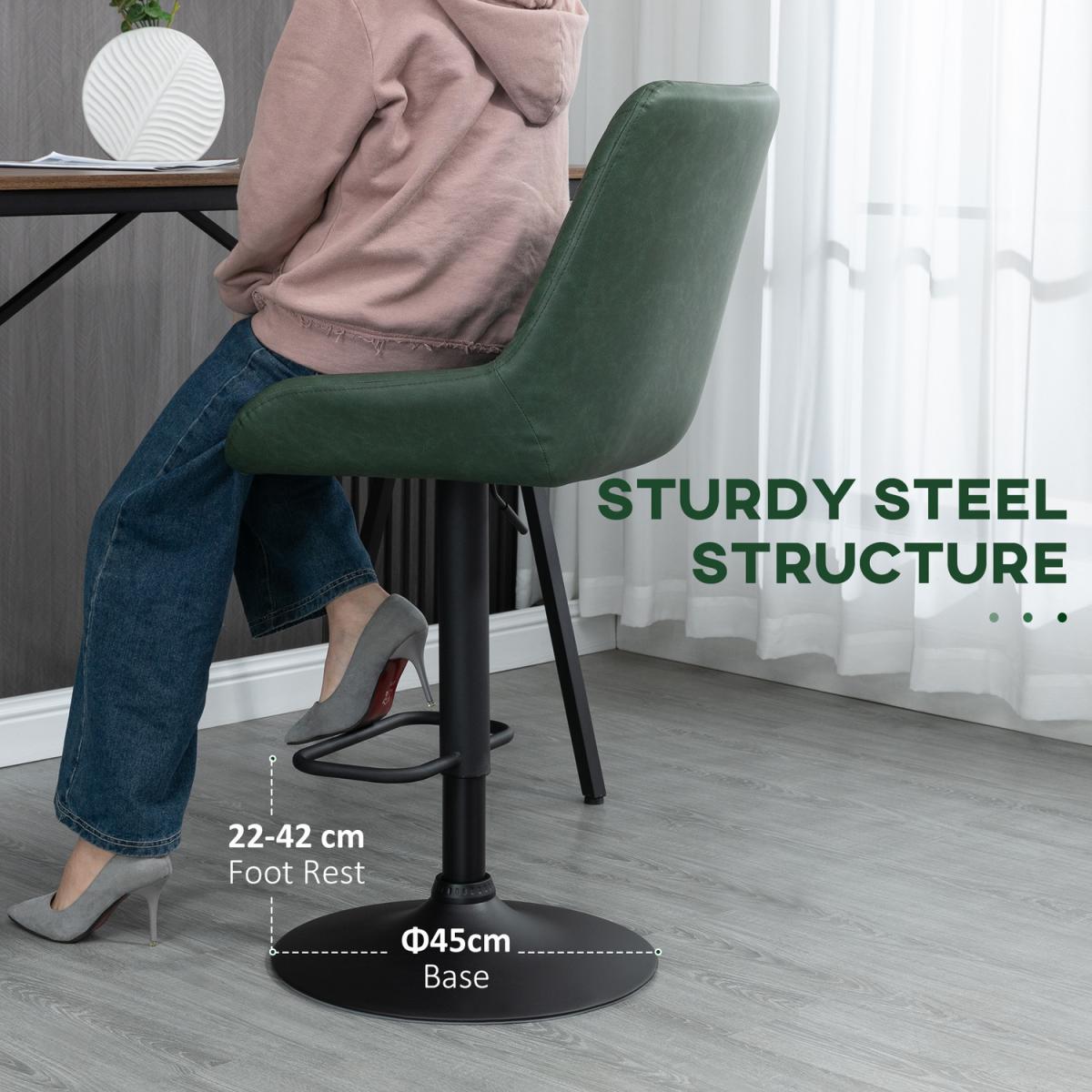 A stylish look for your kitchen dining spots with these HOMCOM bar stools. Faux leather upholstery for a beautiful look. Padded seat and high back to keep you comfortable and supported. A metal base for strength and keeping you supported, the height is adjustable between 63-83cm set to a level best for you. Completed with a lower footrest.