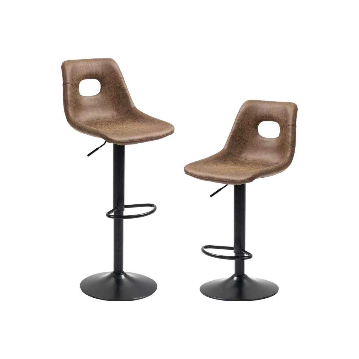 Set of 2 Adjustable Breakfast Dining Stools - Brown
