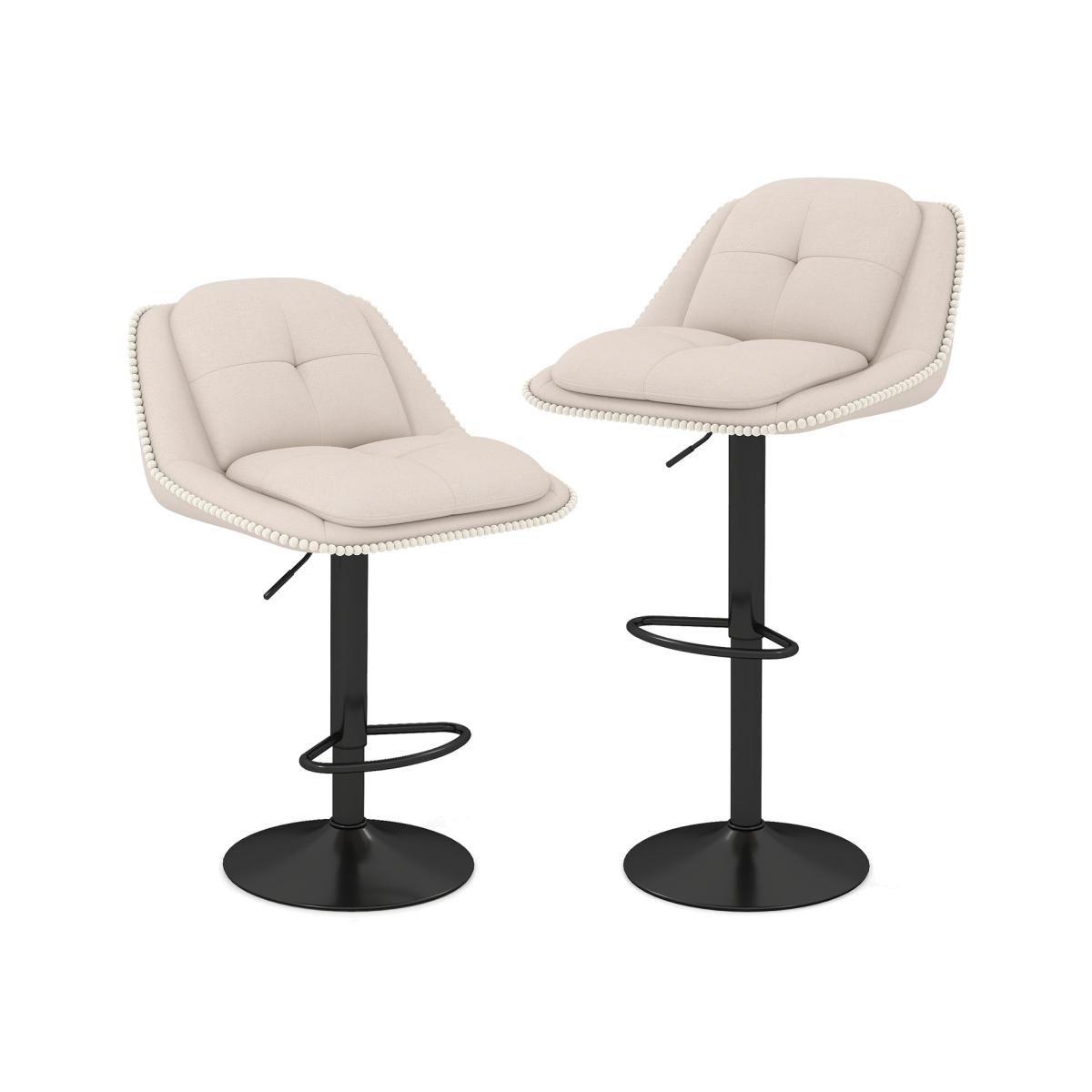 Elevate your seating experience with our modern bar stools set of 2! These upholstered bar stools boast a height adjustable design to suit people of varying heights, while the 360 degrees swivel makes it convenient to engage in conversations. Moreover, the padded back cushions and multi-layer seat cushions, along with footrests, contribute to a comfortable seating feeling. Supported by robust bases with anti-slip rubber rings, the counter height barstools ensure exceptional stability. Featuring a modern appearance, these modern swivel bar chairs is a stylish addition to your home, whether placed in the kitchen, dining room, or home bar.