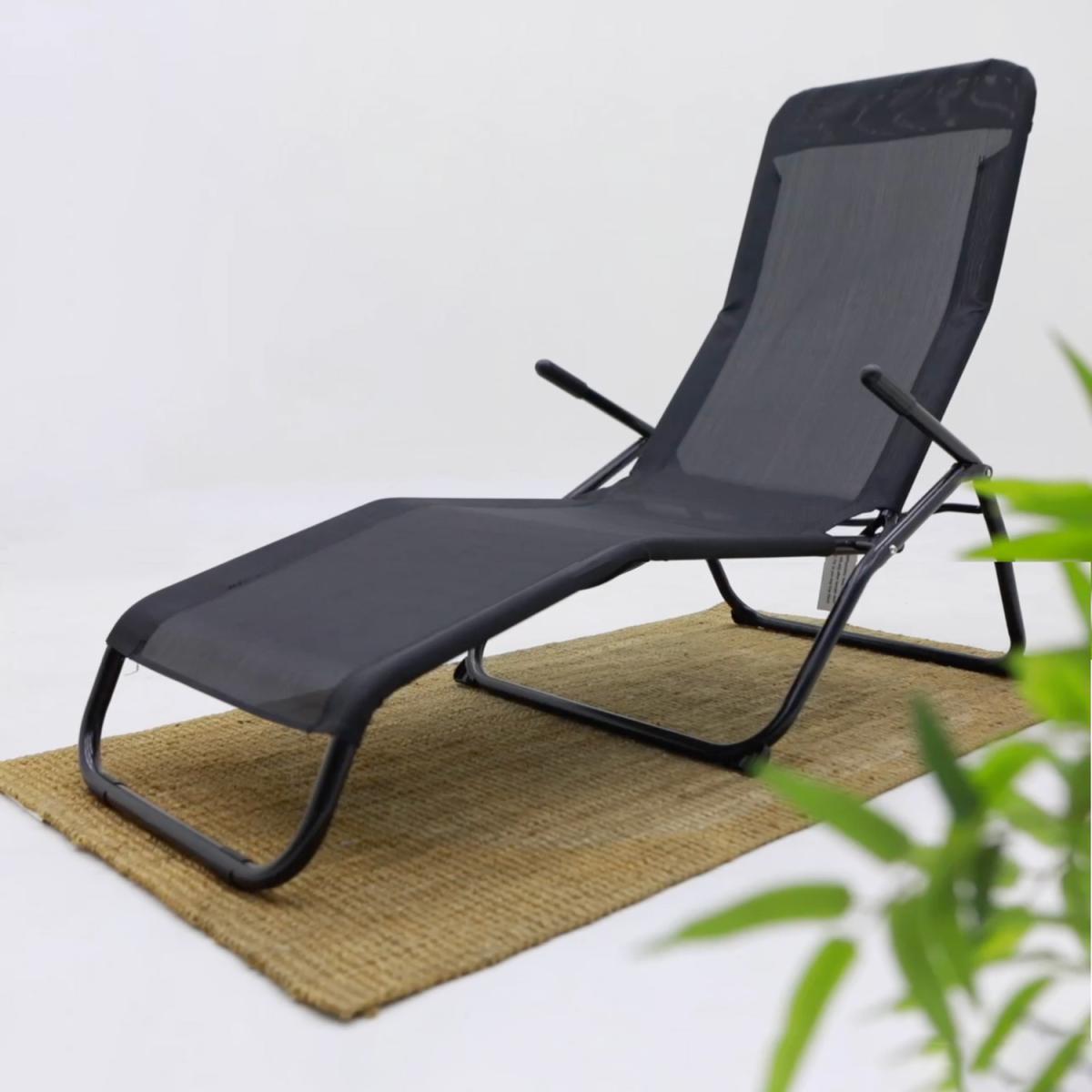 Set of 2 Garden Co textilene sun loungers. Very light and easy to store with adjustable sitting positions. Sitting or lying, the reclining deckchairs from Garden Co will look elegant and stylish in your garden on a patio or lawn. Enjoy the sun in perfect comfort throughout the season and store away easily with the foldable design. It's easy to move between the angles of the chair by using the armrests. These loungers are lightweight for easy storage, yet strong as the fabric is made of textilene. This is a perfect material for outdoor use and does not fade with the weather. In addition, the fabric adapts to the shape of your body and allows it to breathe in hot weather. Plastic connectors protect the frame from damage when sitting or lying down.