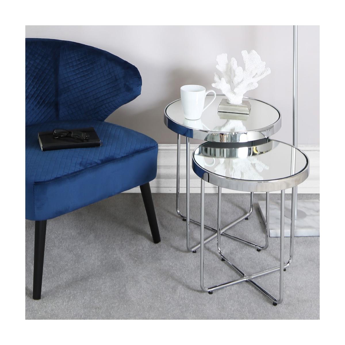 Showcase modern style in your interior with the tables that feature a space-saving frame and a stylish mirrored tabletop.