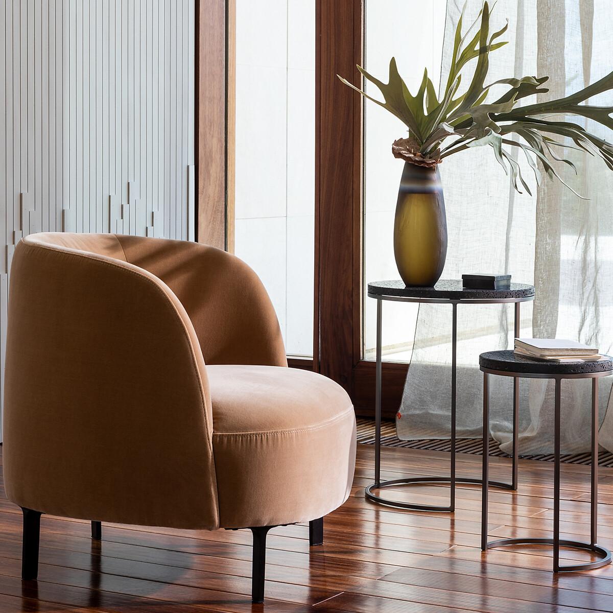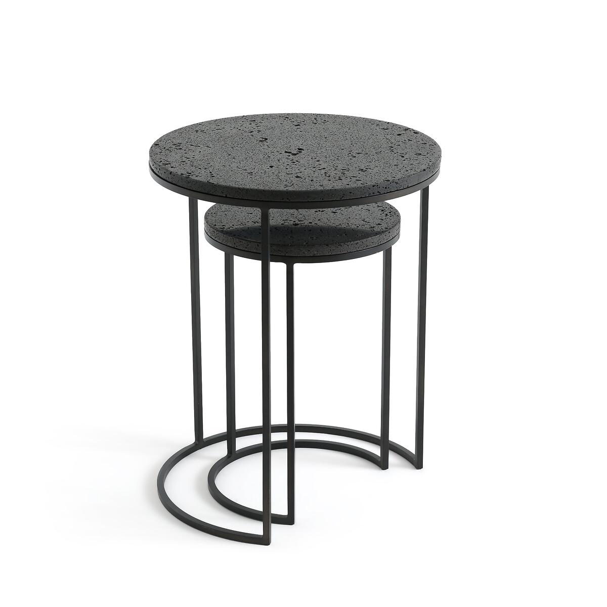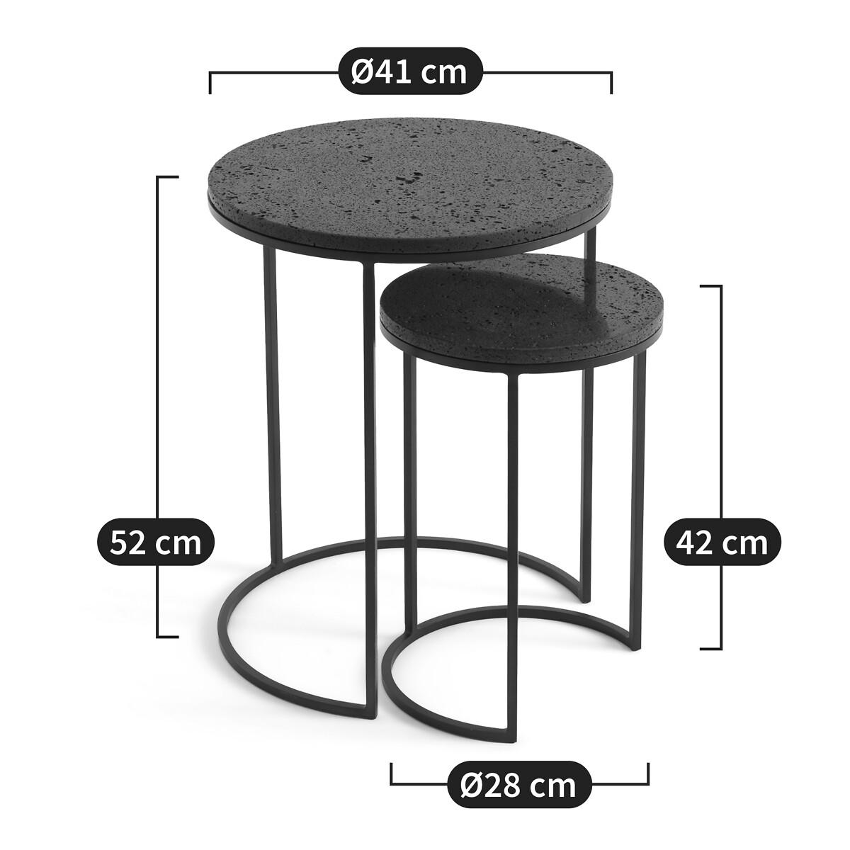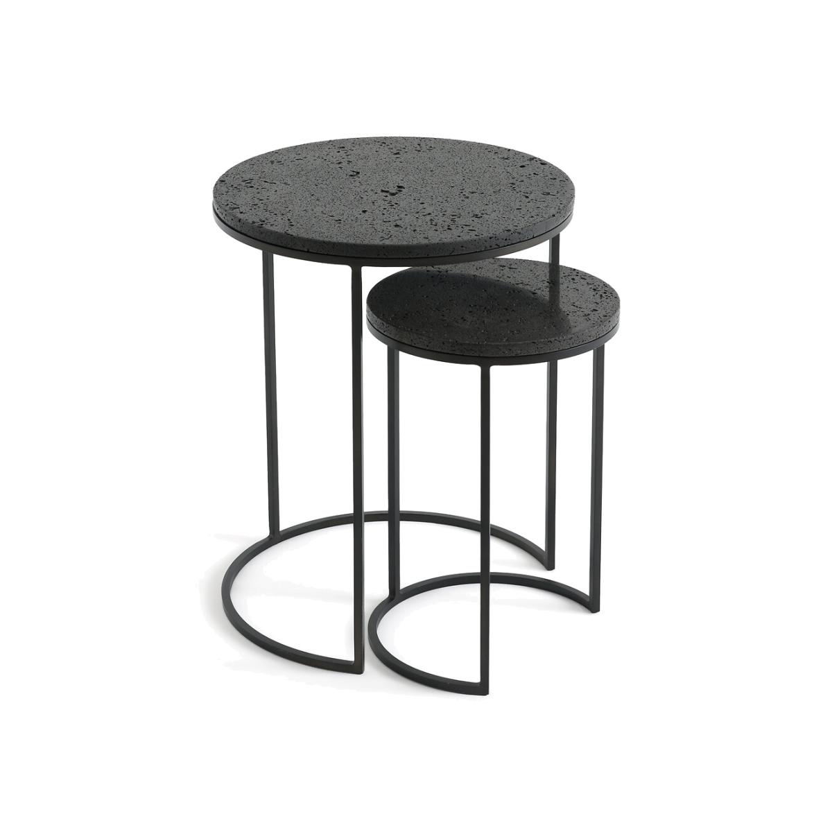 I love the look of these side tables, particularly their mix of rugged lava stone tops with sleek metal bases-creating a modern yet earthy vibe. They work well in contemporary interiors, especially those with minimalist or industrial themes, but can also add texture to softer, more eclectic spaces. Practical styling tips include stacking books or decorative accessories on the larger table, while the smaller one is perfect for holding a lamp or your favourite mug. Because they are a set, they’re versatile for both grouping together or placing separately across a room for a balanced and functional setup. Their neutral tones ensure they integrate seamlessly into various colour palettes, making them a smart and stylish addition.
