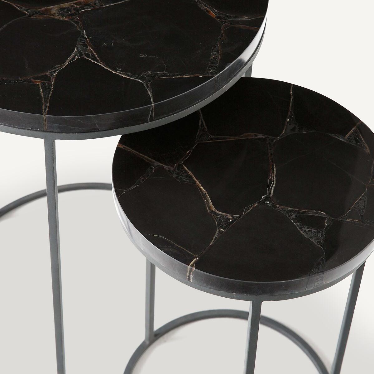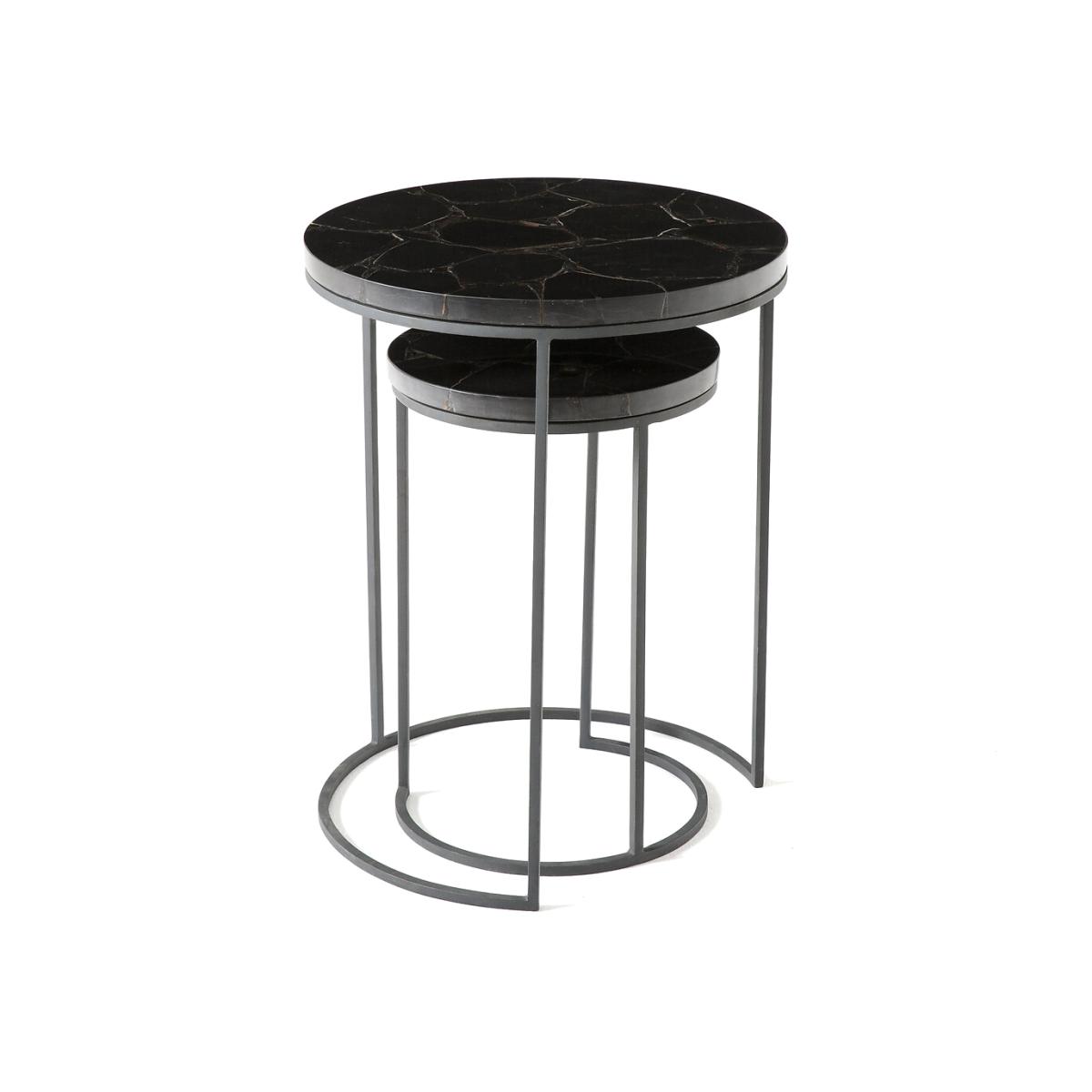 Set of 2 Anaximène Nesting Side Tables in Agate & Metal