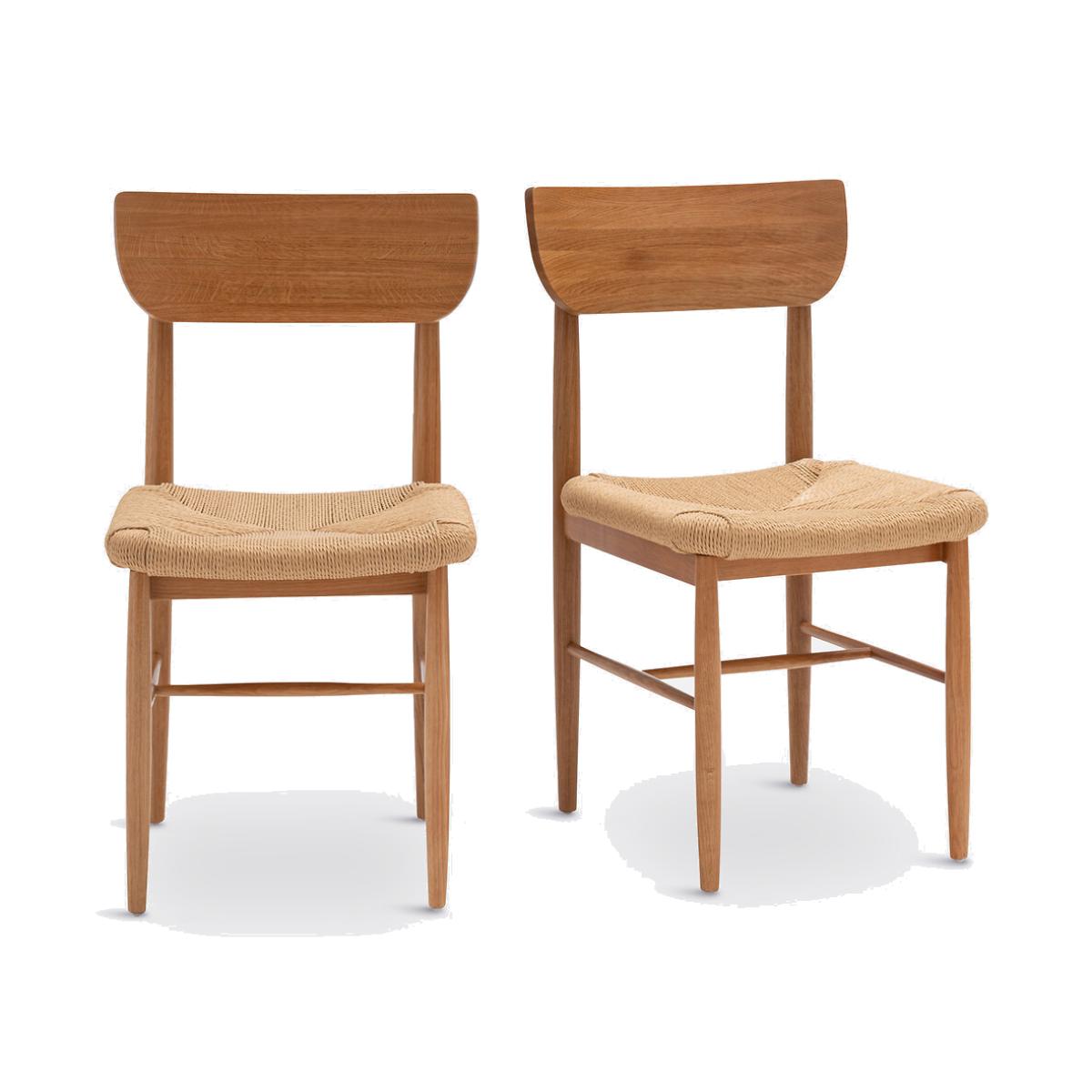 The Andre range combines solid oak and handcrafted paper rope braiding. A simple and raw design. Crafted in the style of heritage pieces. Created by La Redoute Interiors. Product Details • Structure and legs in FSC® certified solid oak, nitrocellulose varnish finish • Seating crafted in braided paper rope • Polyethylene feet • Pack of 2. Dimensions • Length: 47.5cm • Height: 83.5cm • Depth: 49cm • Seat: H45.4cmDelivery:. Sold pre-assembled. Available for home delivery. Note! Please check that all access points are large enough to accommodate your delivery (doors, stairs, lifts). • WOOD FROM SUSTAINABLY MANAGED FORESTS. FSC® certified wood comes from forests that are environmentally, socially and economically well managed. Dimensions and weight of parcel1 parcel • L60 x H97 x D50cm. 16.7kg