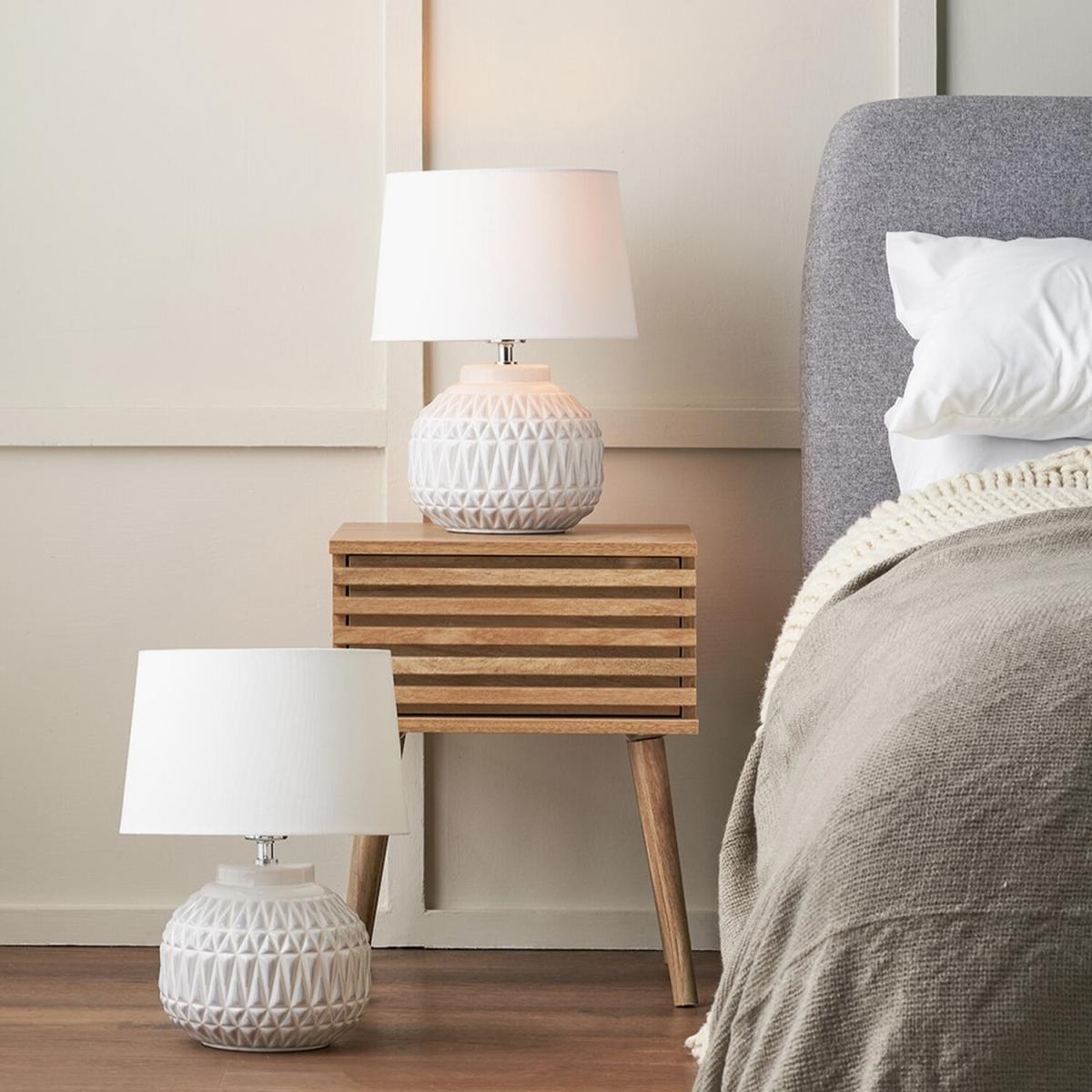 I love these little lamps for their textured, Aztec-inspired design, which adds visual interest without overwhelming a space. They work really well in both modern and boho interiors, especially when you want to introduce some subtle pattern and tactile detail. Practical styling tips include placing them on bedside tables or sideboards where their compact size can balance a larger piece of furniture, and pairing with neutral or earthy tones to let the textured ceramic stand out. They’re perfect for creating cosy, inviting atmospheres, and their white finish makes them versatile enough to complement a wide range of colour schemes.