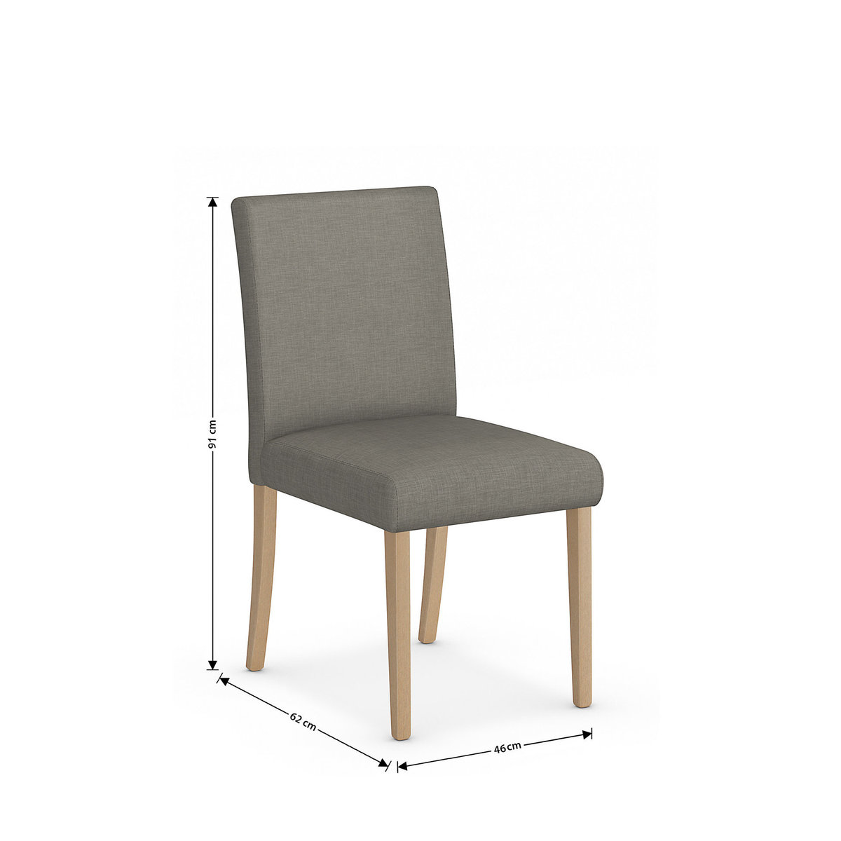Add a contemporary spin to your home with these comfortable and stylish dining chairs. Solid wood frame design with soft cushioned seat. Comes in a set of two. We’re so confident our furniture is built to last, our industry-leading guarantee covers any manufacturing failure on all furniture. That’s our promise, and why our furniture comes with a 10-year guarantee that you can trust. Excludes: outdoor furniture and any issues that are a result of normal wear and tear, improper care or accidental damage.