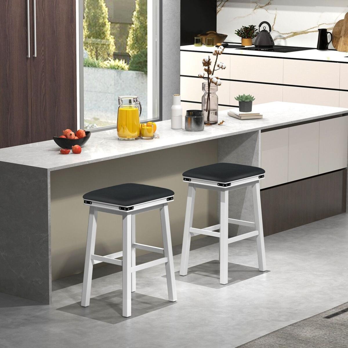 Experience the epitome of comfort with our exquisite backless bar stools. Crafted for your utter relaxation, these stools boast a soft seat cushion, ensconced in high-quality PU leather, and cushioned with the gentle touch of a soft sponge. Rest easy for hours on end, as these opulent stools provide luxurious comfort that knows no bounds. Infusing any space with a vintage farmhouse allure, their rivet accents and elegant finish effortlessly elevate decoration, creating a nostalgic charm.