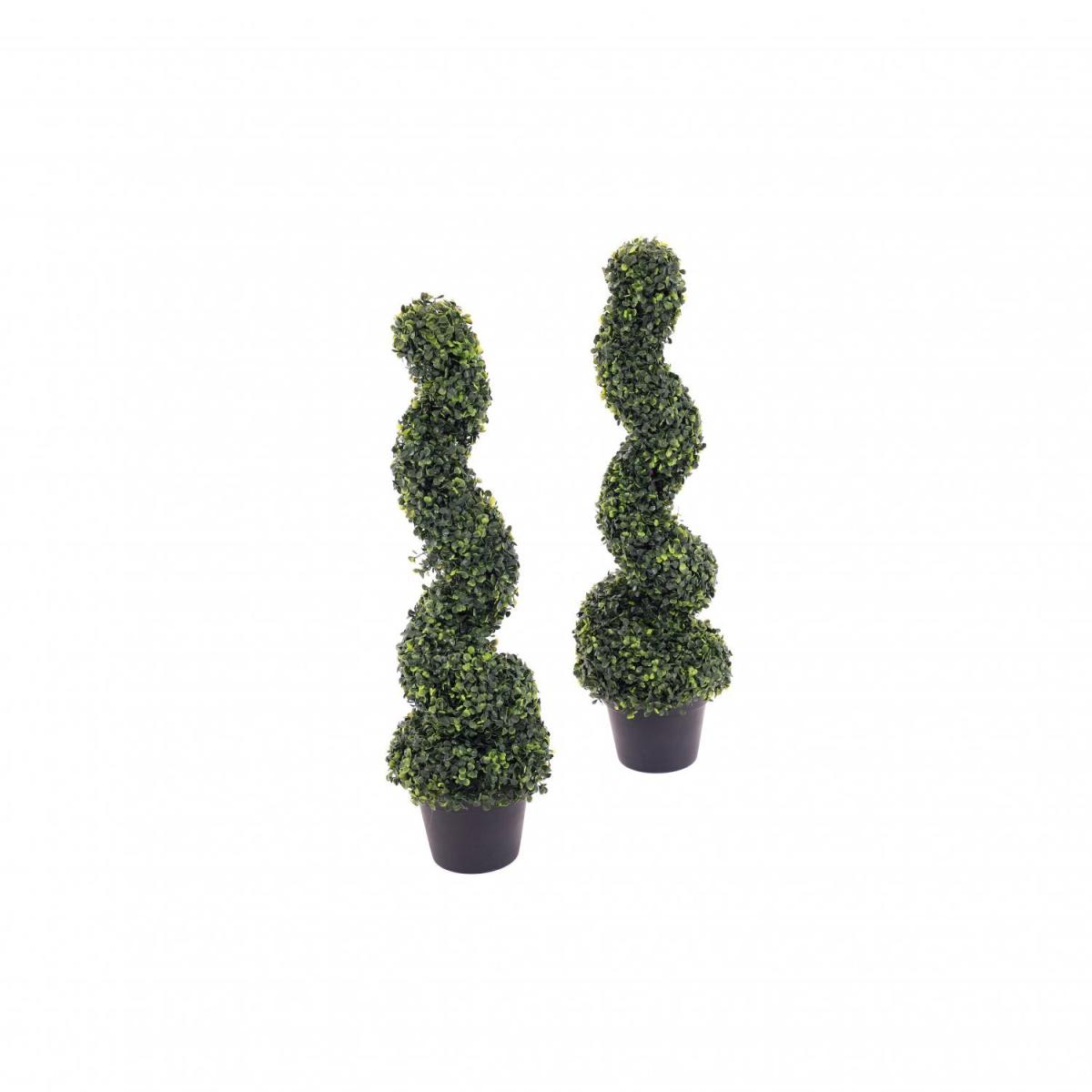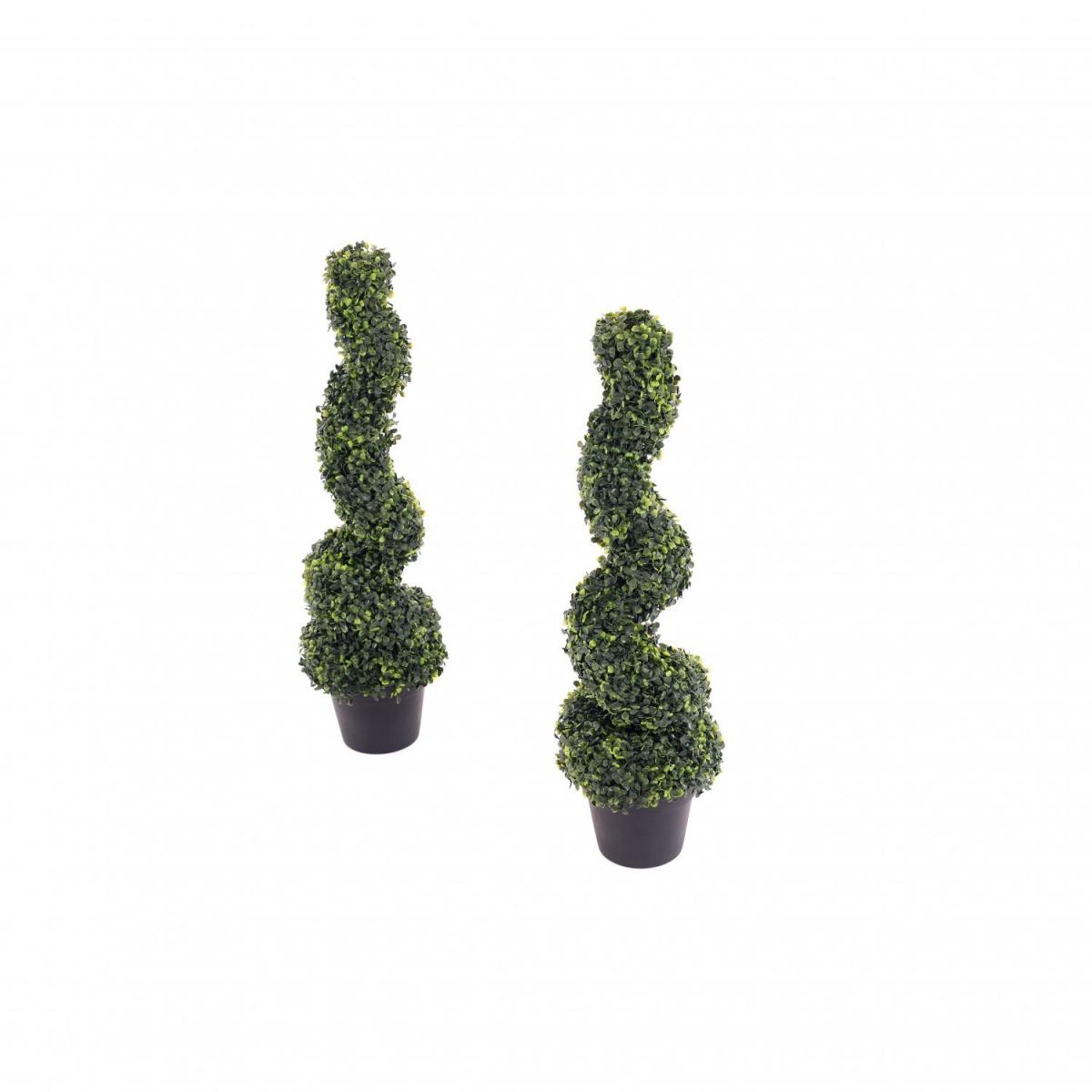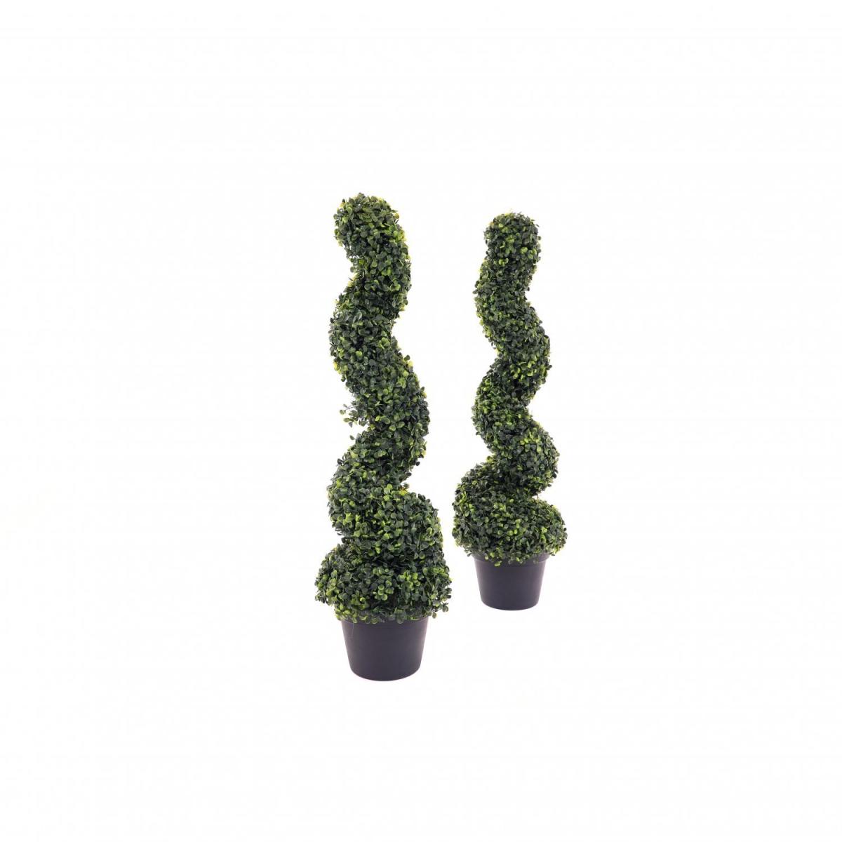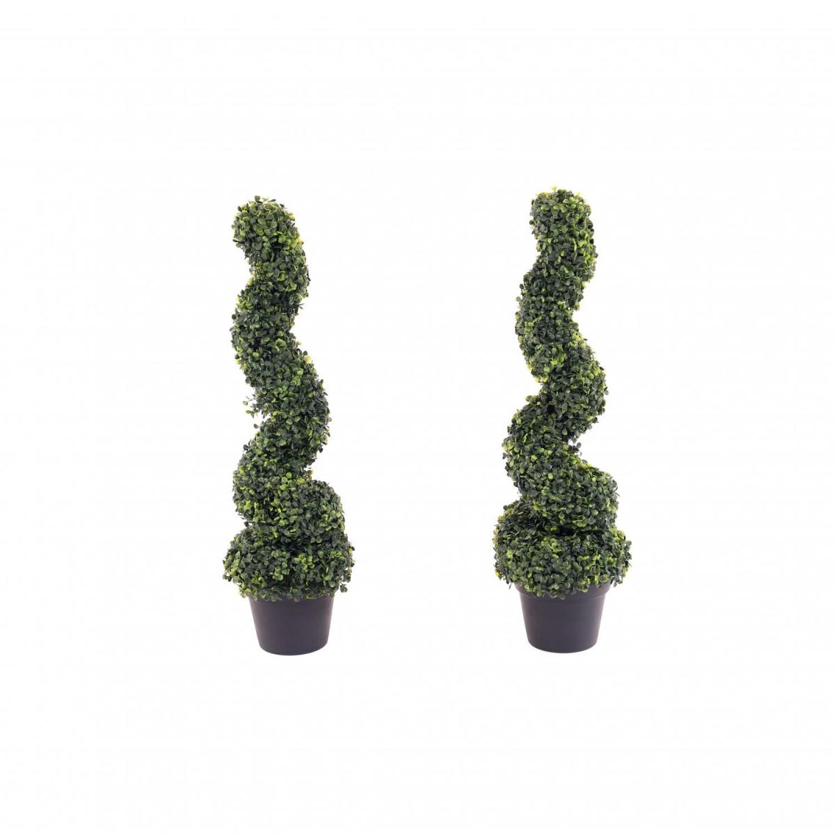 Set of 2 Artificial Topiary Boxwood Spiral Trees