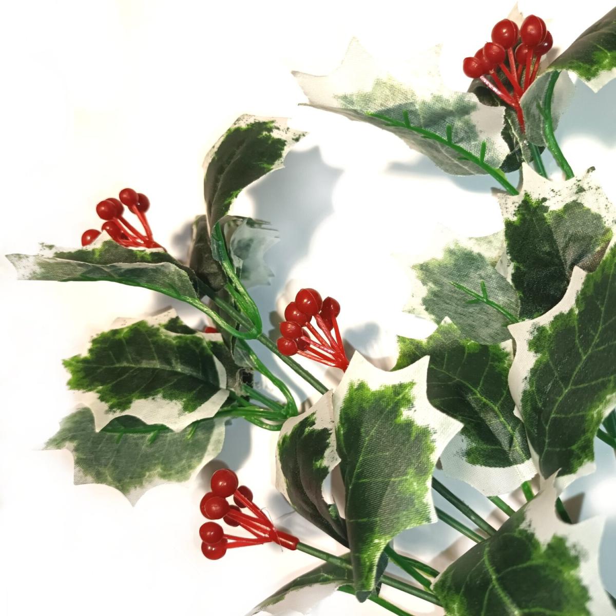 These lovely Artificial Holly plants measure 33cm with a stem. Perfect for faux flower craft projects, Christmas decorations, gifts and with flower displays in lobby areas, hallways, living rooms and entertaining areas. 2 Artificial Holly plants.