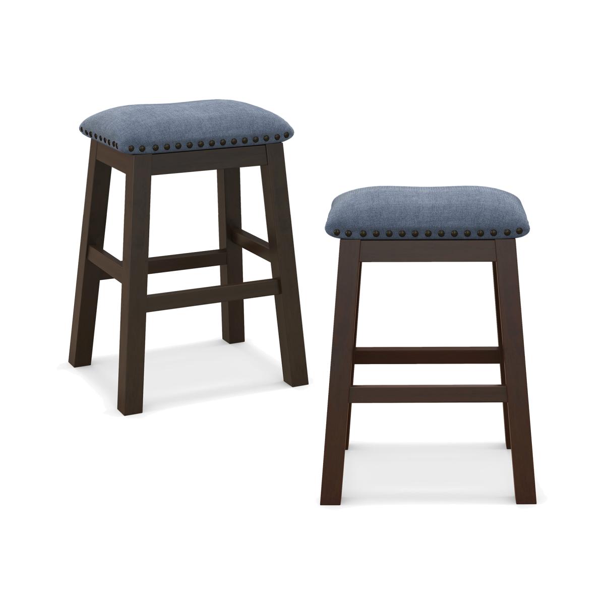 Set of 2 Bar Stools Saddle Padded Seat Stool Counter Height Stools - Brown