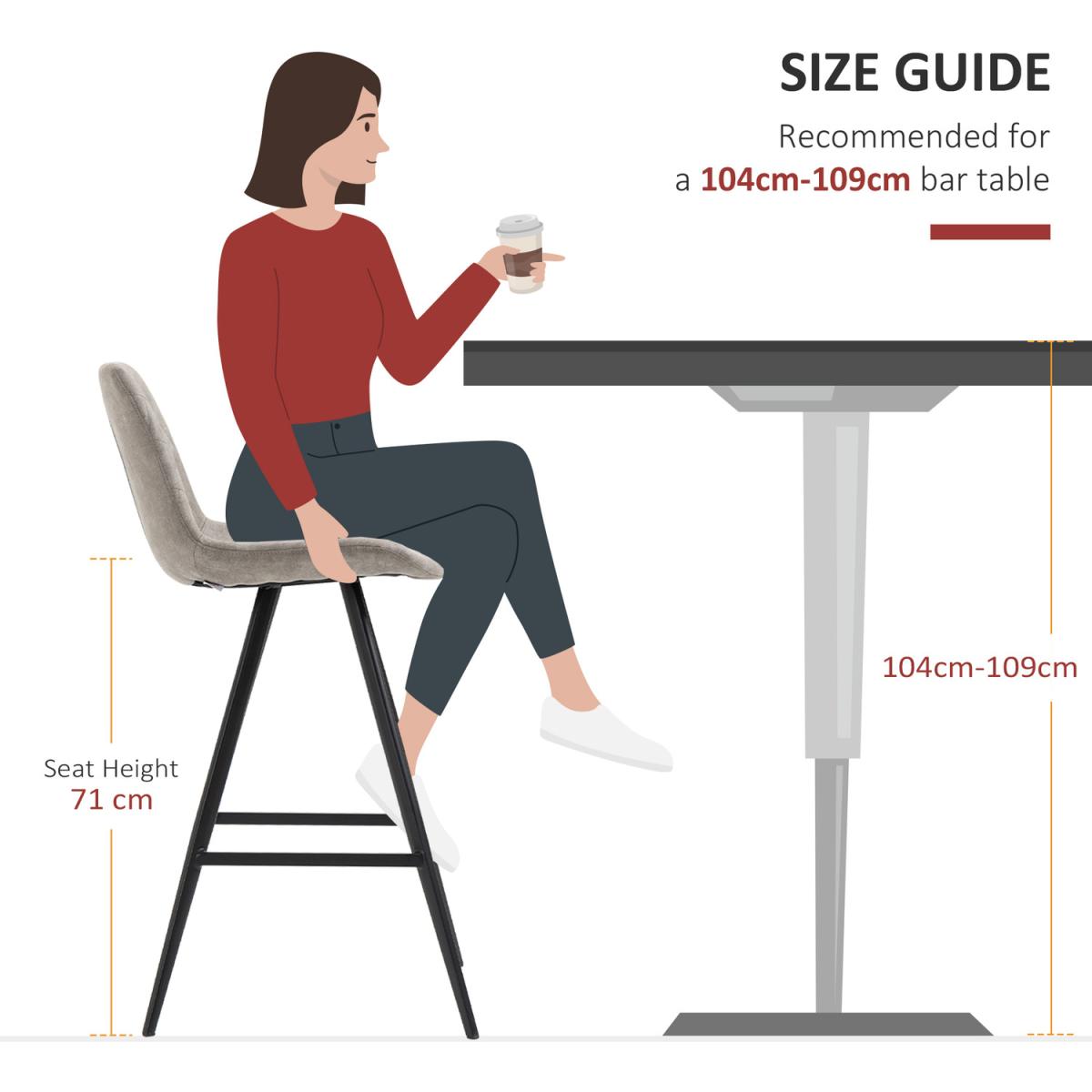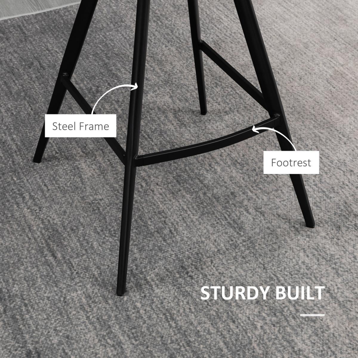 It's time to bring some serious style into your home with these two bar stools from HOMCOM. Vintage-looking worn-out microfibre upholstery covers the seats, with a quilted texture for extra retro points. The tub-shaped seats are smoothly curved, with padding for comfort, they have a high back for body support. A steel frame for a strong and supportive core, complete with handy footrests.
