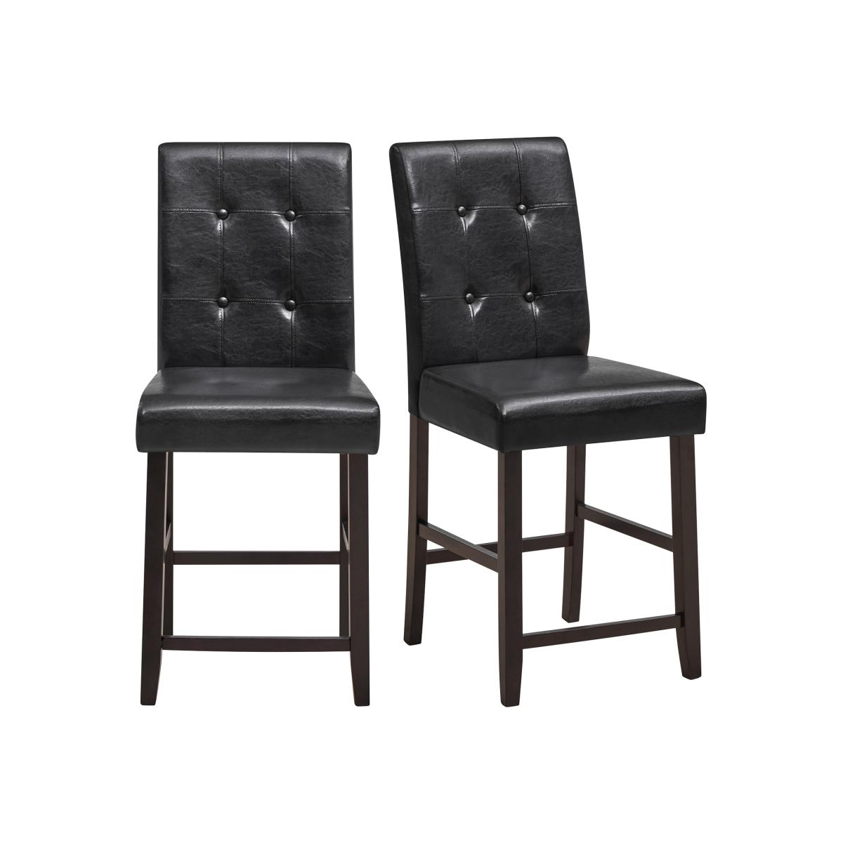 Set of 2 Bar Stools with Button-Tufted Back - Black
