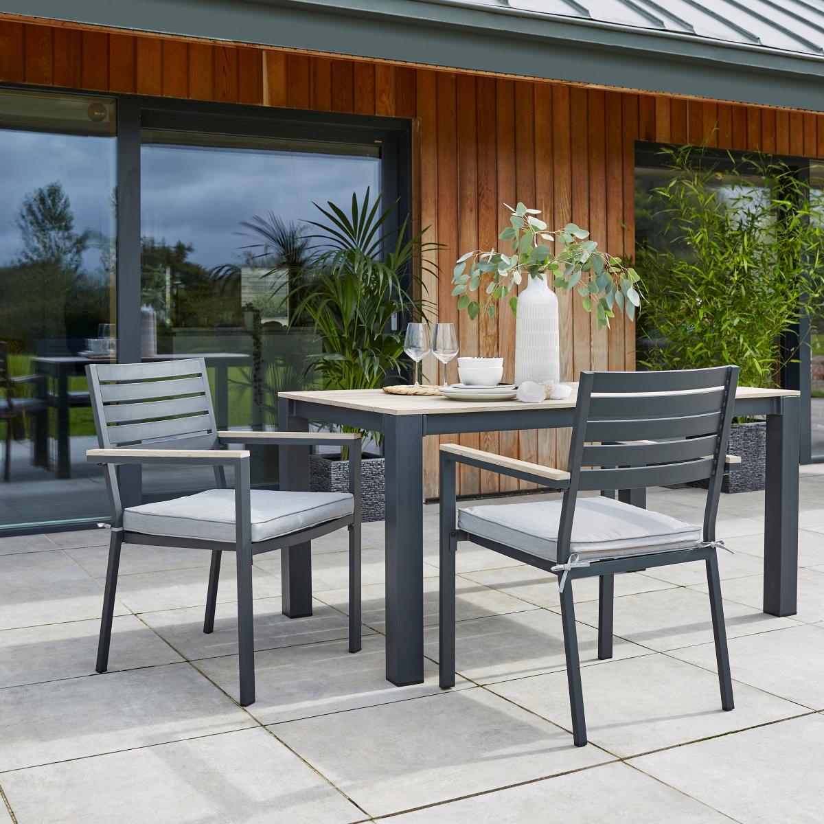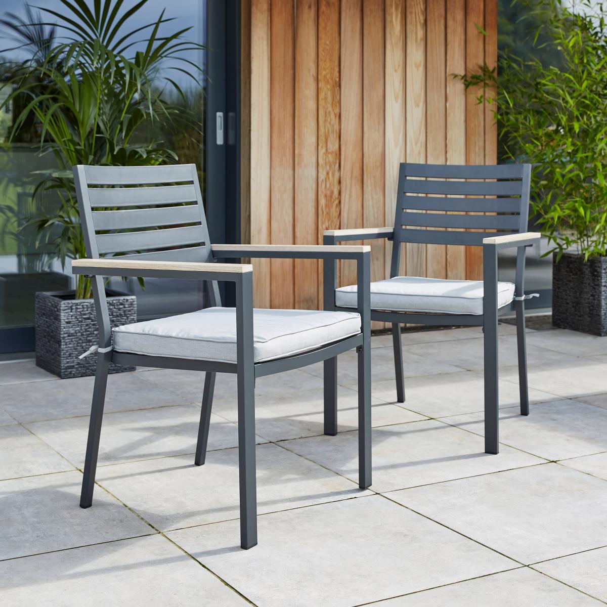 I love these chairs for their sleek, modern take on outdoor furniture, making them versatile in many settings. They work well in contemporary or minimalist gardens, as well as on patios and terraces, adding a touch of sophistication without feeling fussy. Practical styling tips include pairing them with neutral-toned cushions or bright, patterned fabrics to inject colour and comfort. They also look great combined with a dining table for outdoor meals or used as standalone side chairs around a firepit or lounge area. Their clean lines and durable construction ensure they’ll be a stylish and low-maintenance addition to any outdoor space.
