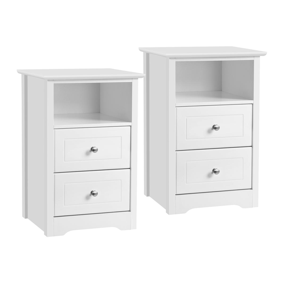 Set of 2 Bedside Table with 2 Drawers and Open Shelf - White