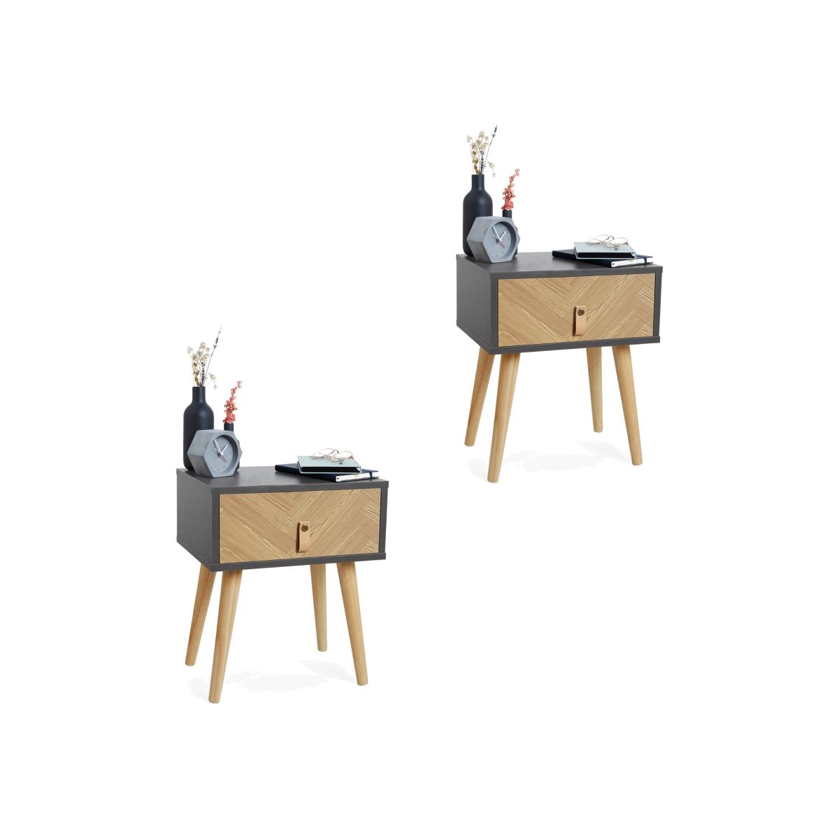 Timelessly on trend bedroom furniture. Von Haus Herringbone Bedside Table with Storage Drawer. Combining traditional and contemporary design, add timeless class to your bedroom with the Von Haus nightstand. Packed with character, the appreciation is in the details, from the subtle faux leather pull tab to the natural grain of the wood effect drawer, contrasted against the sleek grey frame. De-clutter your bedroom with this bedside cabinet and create a refreshed, relaxing environment to ensure a good nights sleep, every night. With a versatile storage drawer and top surface, give all your strewn bits and bobs a stylish home. A must have for any bedroom with any decor, this small bedside table will work in any space. Why not use as a side table or small coffee table in your living room or home office? Browse the matching range to achieve the ultimate coordinated aesthetic today.