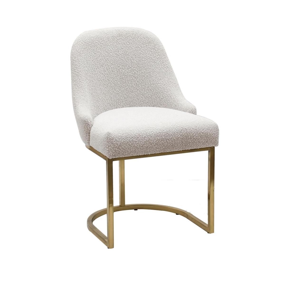 Set of 2 Beige Boucle Dining Chairs with Brass Legs - Callie