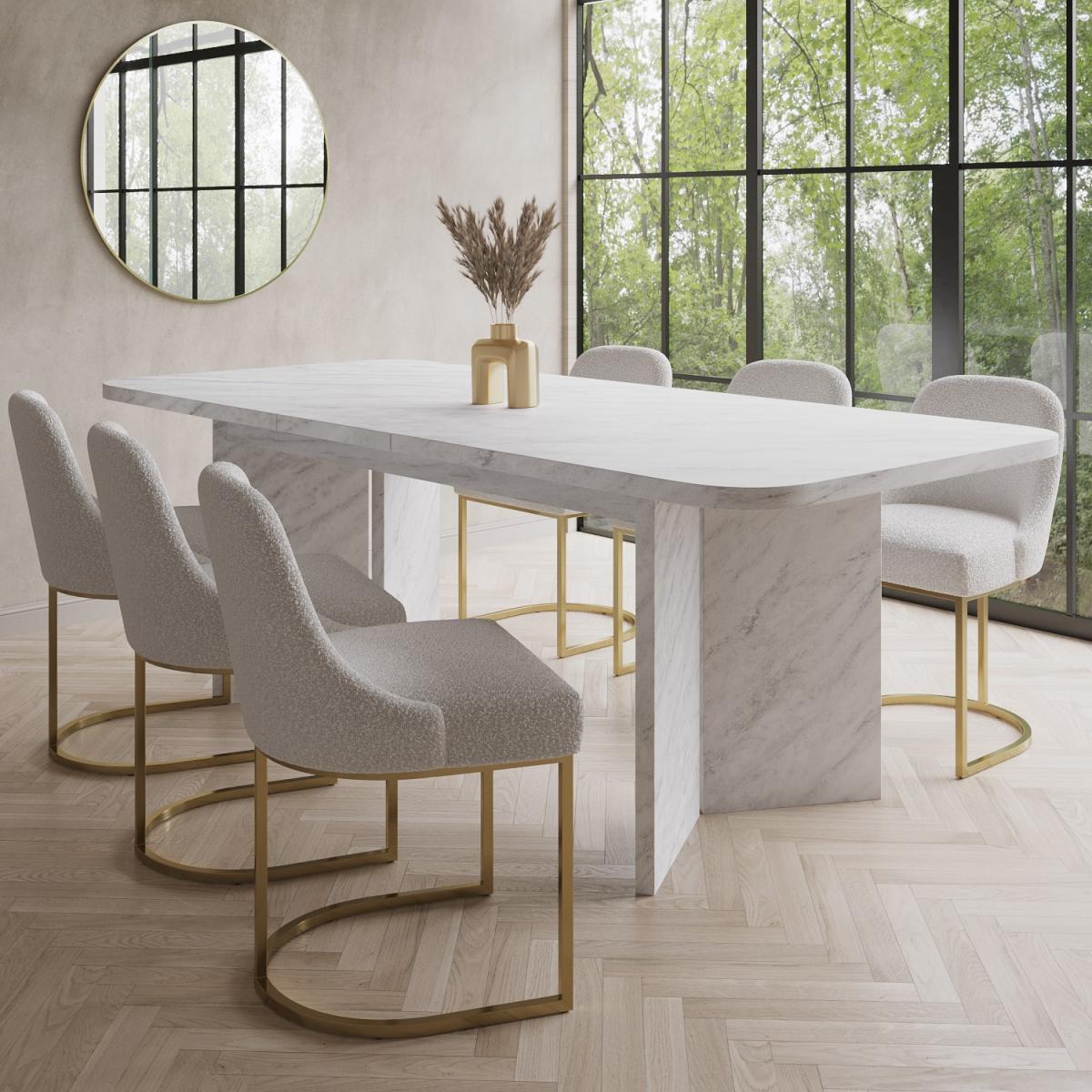 I’m a fan of these boucle chairs for the way their soft, tactile upholstery balances the cool gleam of the brass legs. They sit comfortably in modern Scandi schemes, mid-century-inspired dining rooms or even an eclectic mix of natural textures. Pair them with a light oak or marble-top table to keep the palette fresh, then layer in a neutral wool rug and simple linen runner for a lived-in look. For practical styling, rotate their positions to maintain even wear on the fabric, and treat the brass frame with a mild metal polish every few months. Add a contrasting cushion in muted green or clay to introduce a subtle dash of colour and extra back support.