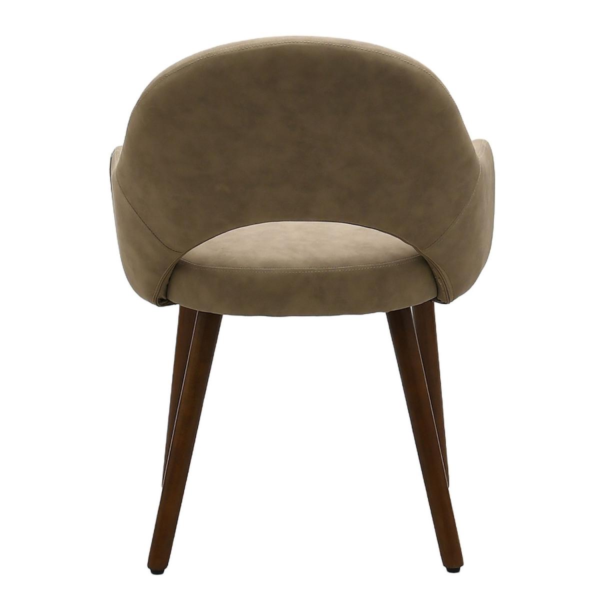 The classic chic design ensures these chairs seamlessly blend into both contemporary and classic home interiors. Soft, durable, and easy to clean, the beige upholstery adds a calm, neutral tone to your decor. Its solid rubberwood legs are stained in a rich walnut tone, offering strength, stability and a high-end finish that complements the leather beautifully. Ideal as dining chairs or stylish occasional seating in bedrooms, living rooms, or offices. The gently curved backrest and padded seat ensure comfort for long dinners or casual gatherings. This pair of Colbie chairs is the ideal combination of style and versatility, suiting a dining room setting or as occasion chairs for bedrooms and more. Sophisticated in their design, they can provide the finishing touch you've been striving for. Upholstered in a beige faux leather and finished off with sleek walnut legs, these chairs offer a timeless design and comfortable dining experience.