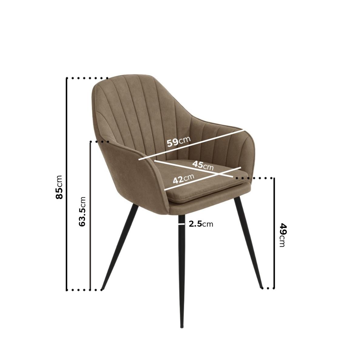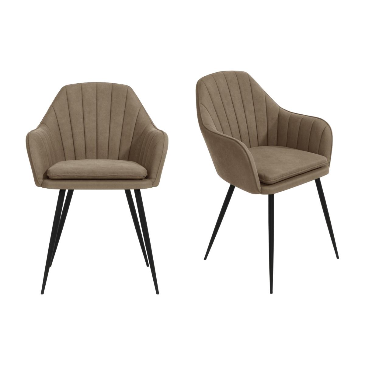 Features we love Inludes 2 beige faux leather dining chairs with arms. Two tone beige and; black are the perfect constrast. The faux leather is full of character with its stylish appearance. Comfortable padded seats and armrest Sturdy frame construction All about me. Complete your dining room with a pair of Logan dining chairs. With an on trend design the styling is effortless. They feature curved chair backs with stunning black metal chair legs. Finished in beige faux leather and black legs the two tone design brings a fresh look to your space with a modern touch. The dining chairs are highly durable and hardwearing they'll easily withstanding the test of time in a busy family dining room. These chairs are supplied in pairs making it easy for you to coordinate them with the dining table of your choice. The chairs will require self-assembly. Need to know. Number of chairs. 2 Dimensions. H85 x W59 x D45 cm Maximum Load Weight. 150kg per chair Material. Faux leather and; metal Finish. Two tone - Beige and; Black Assembly required. Yes.