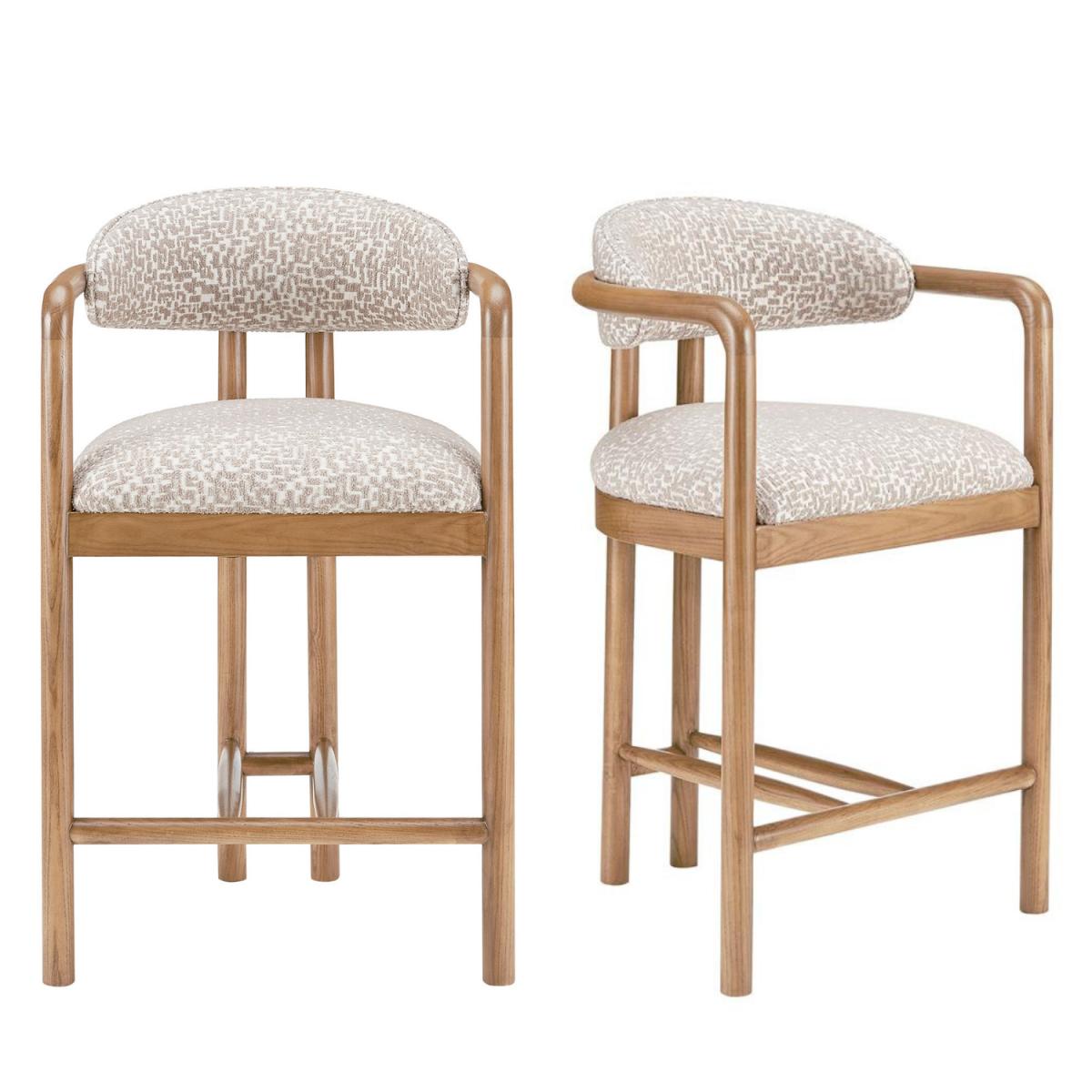 Elegant and versatile, the fabric complements any interior decor with its refined texture and tone. Crafted for durability and support, the natural wood finish enhances the stool’s sophisticated appeal. Adds a modern and unique design element, making the stool stand out in any dining space. Designed with comfort in mind, the armrests and backrest ensure a relaxed dining experience. Blends seamlessly with both modern and traditional interiors, offering flexibility in styling your space. High-quality materials ensure longevity and performance, even with daily use. Elevate your kitchen island or breakfast bar with the Darla Jacquard Kitchen Counter Stool, where contemporary design meets timeless elegance. Upholstered in neutral textured fabric, these stools exudes sophistication while seamlessly blending with a variety of interior styles. The solid rubberwood legs provide sturdy support and a natural touch, while the exposed back detail adds a unique and modern twist to its design. The Darla kitchen stool combines comfort and style, making it an eye-catching yet practical addition to any dining room. Perfect for everyday use in busy kitchens or dining areas. Designed with the ideal height for standard kitchen counters, they combine practicality with aesthetic charm, making them a smart choice for all kitchens.