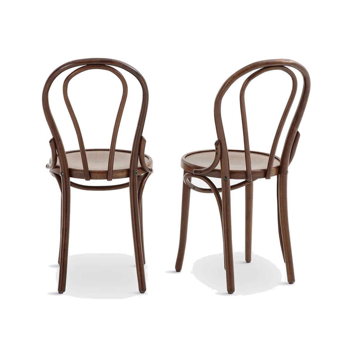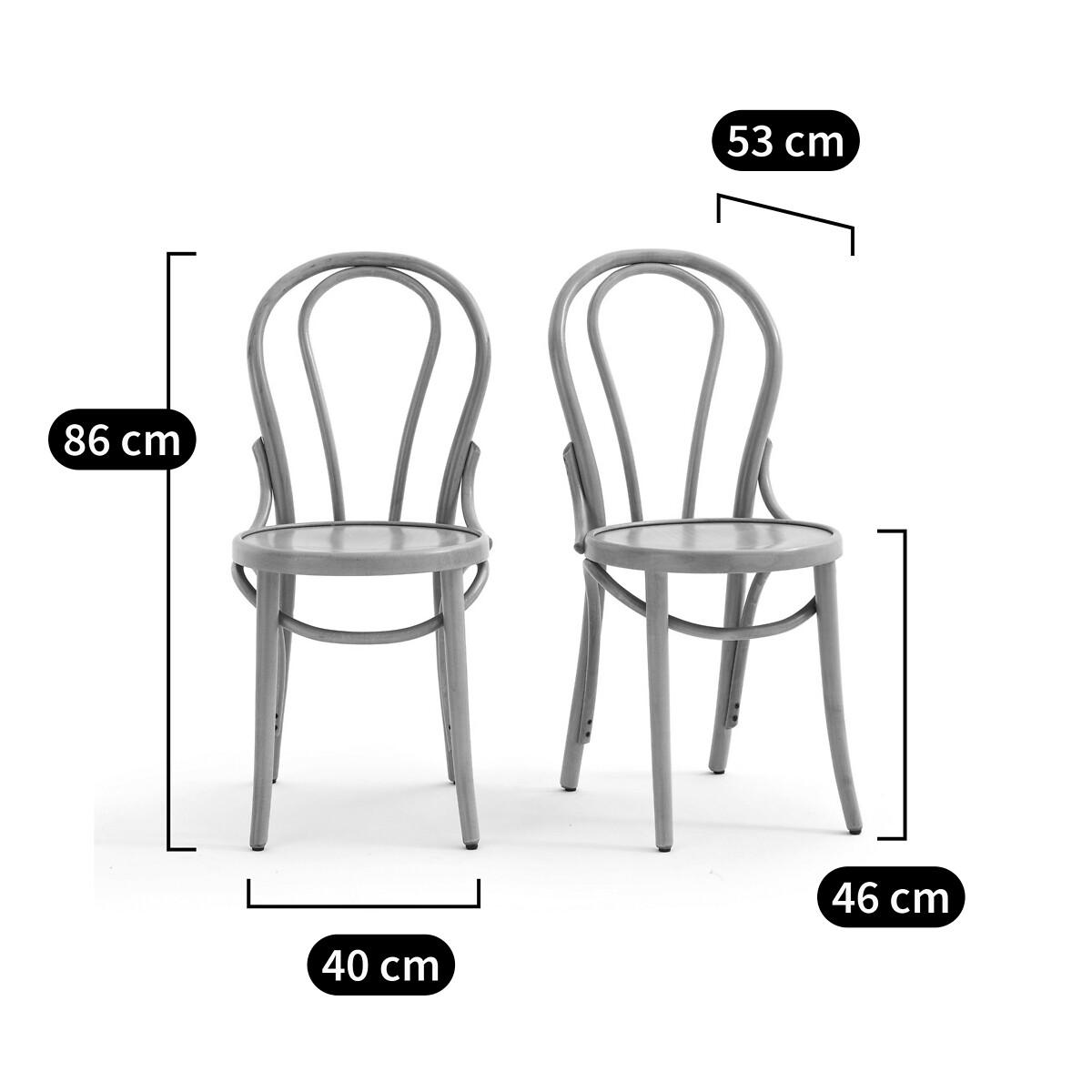 The set of 2 Bistro chairs. Made using the traditional hot bent wood technique, the bistro-style chairs are a timeless and elegant reference in furniture with character. Made in Europe. Product Details • Hot curved solid beech structure • Seat in beech plywood • Polyurethane varnish finish • Plastic feet pads • Made in EuropeDimensions. Total: • Width: 40cm • Height: 86cm, seat 46cm • Depth: 53cmDelivery:. Sold pre-assembled. Available for home delivery. Note! Please check that all access points are large enough to accommodate your delivery (doors, stairs, lifts). • Made in Europe. Parcel Dimensions:1 parcel • L51 x H95 x D42cm • 9.5kg