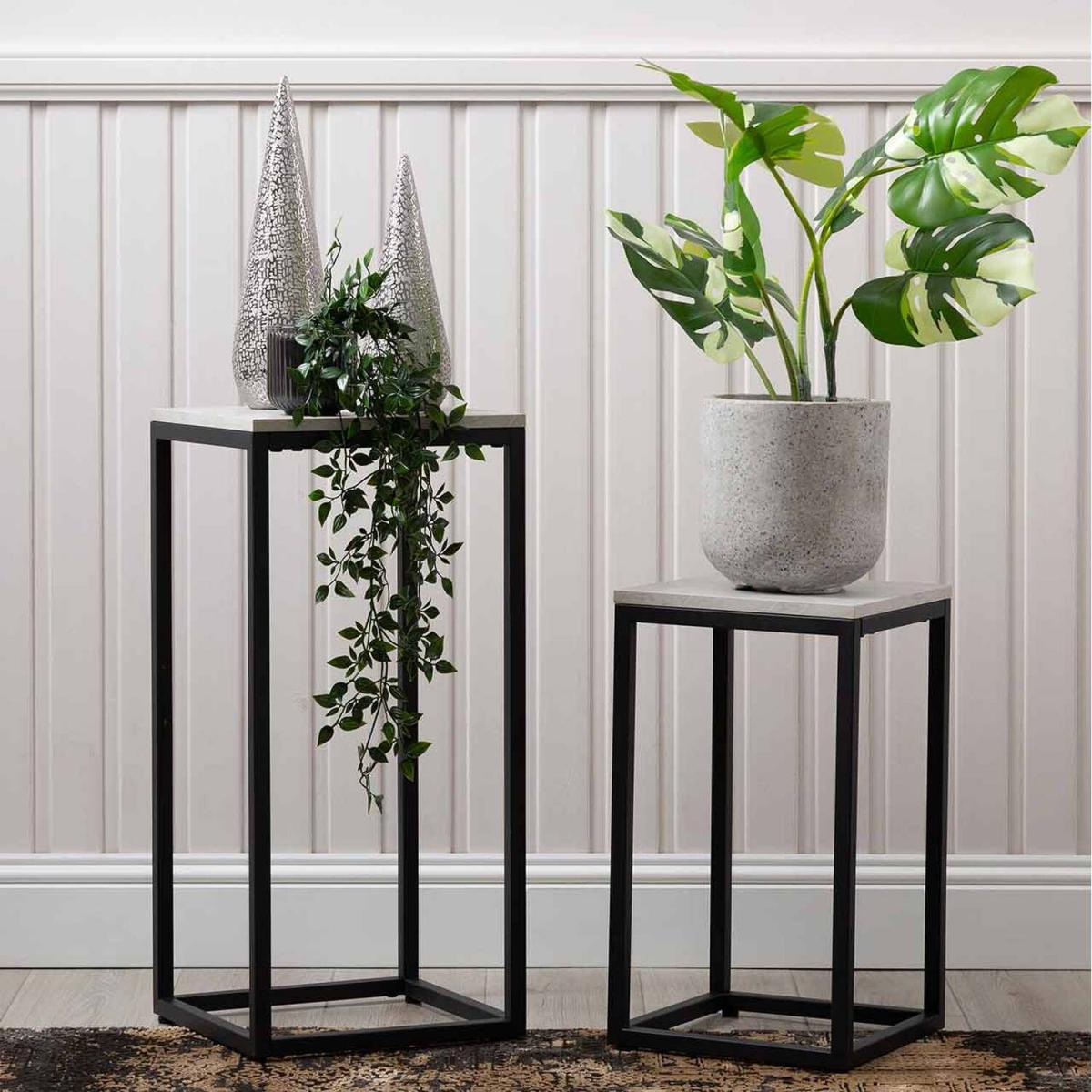 Set of 2 Black and Grey Plant Stand - Black