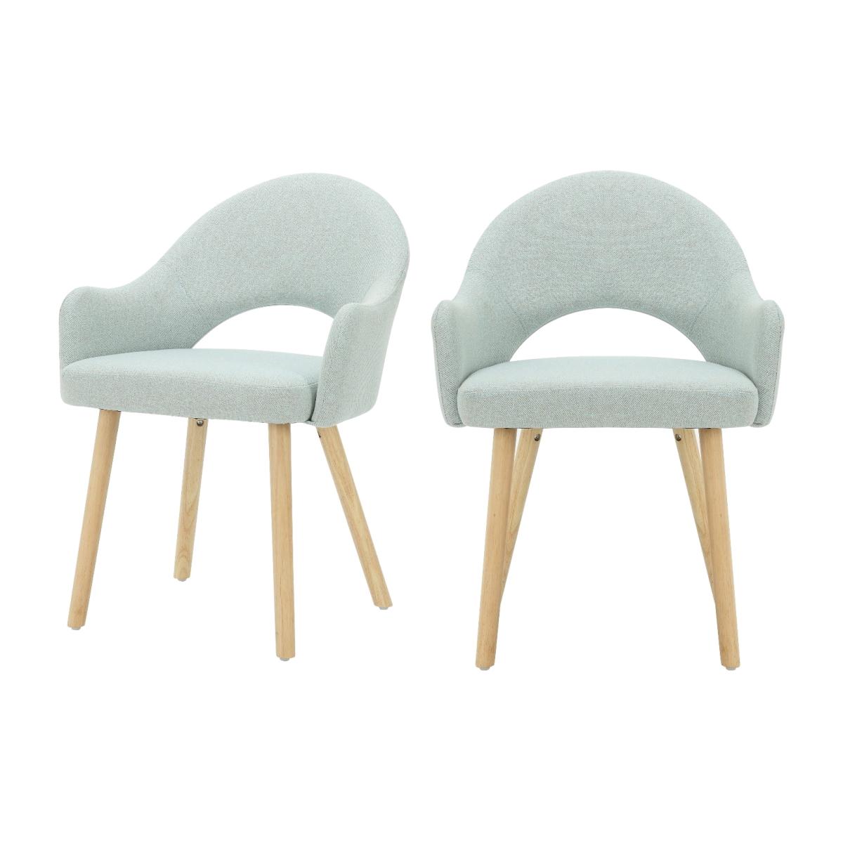 This pair of Colbie chairs offer versatility in the home, suiting a dining room setting or as occasion chairs for bedrooms and more. Sophisticated in their design, they can provide the finishing touch you've been striving for. Upholstered in a blue herringbone textured fabric and finished off with sleek oak legs, these chairs offer a timeless design and comfortable dining experience.