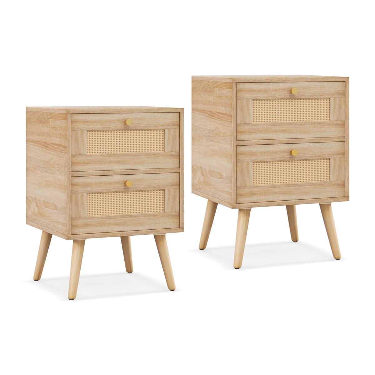 I love this pair of boho bedside tables because they bring a relaxed, natural vibe with their warm brown finish and rattan detail. They work particularly well in earthy, bohemian, or Scandinavian-style bedrooms, adding texture and visual interest without overwhelming the space. Practical styling tips include layering with a small table lamp, a tray for daily essentials, or a favourite read on top. Their compact size makes them perfect for smaller bedrooms or spaces where you want to maximise storage while maintaining a light, airy feel. The mix of wood and cane detail also makes them versatile enough to complement other natural materials, like linen bedding or woven décor.