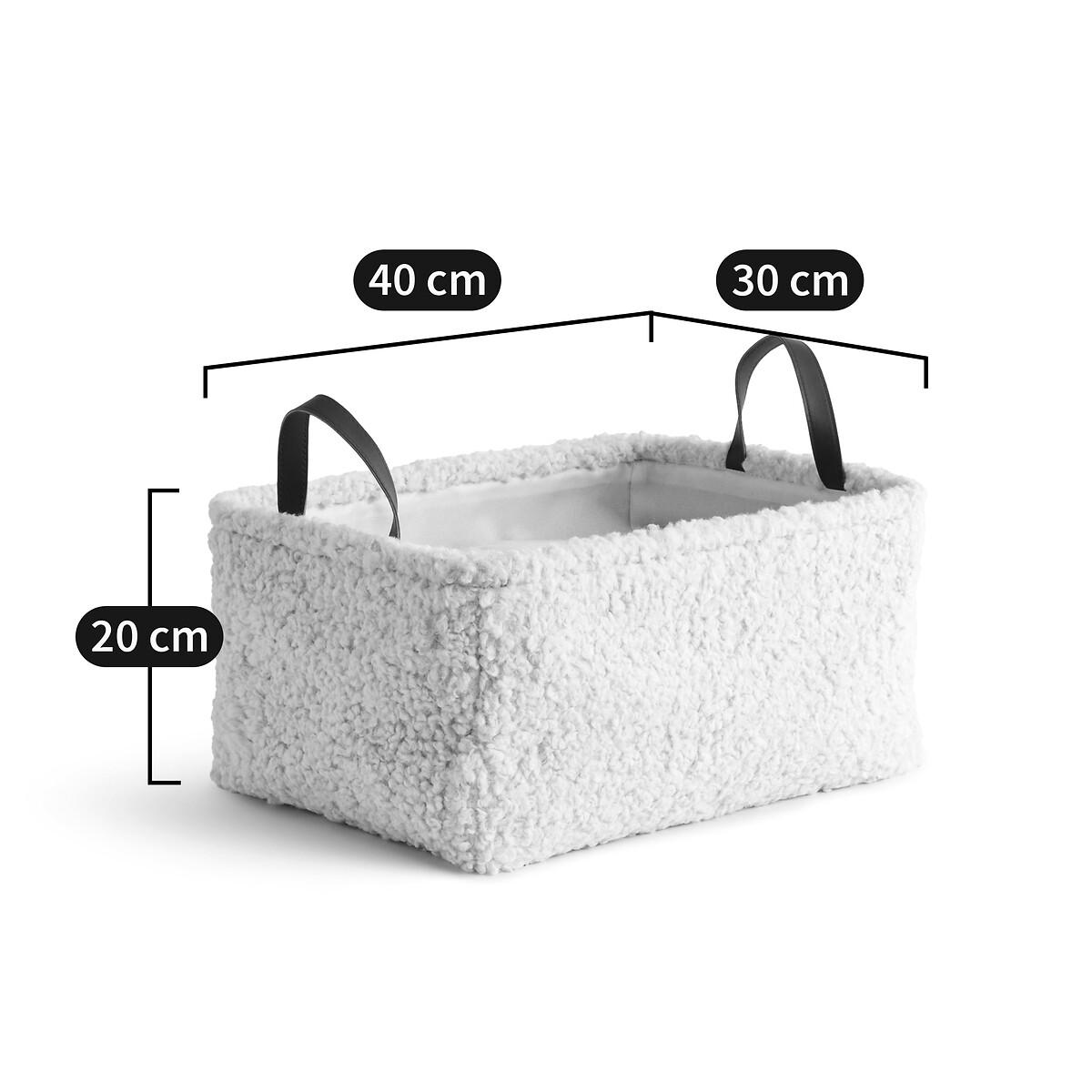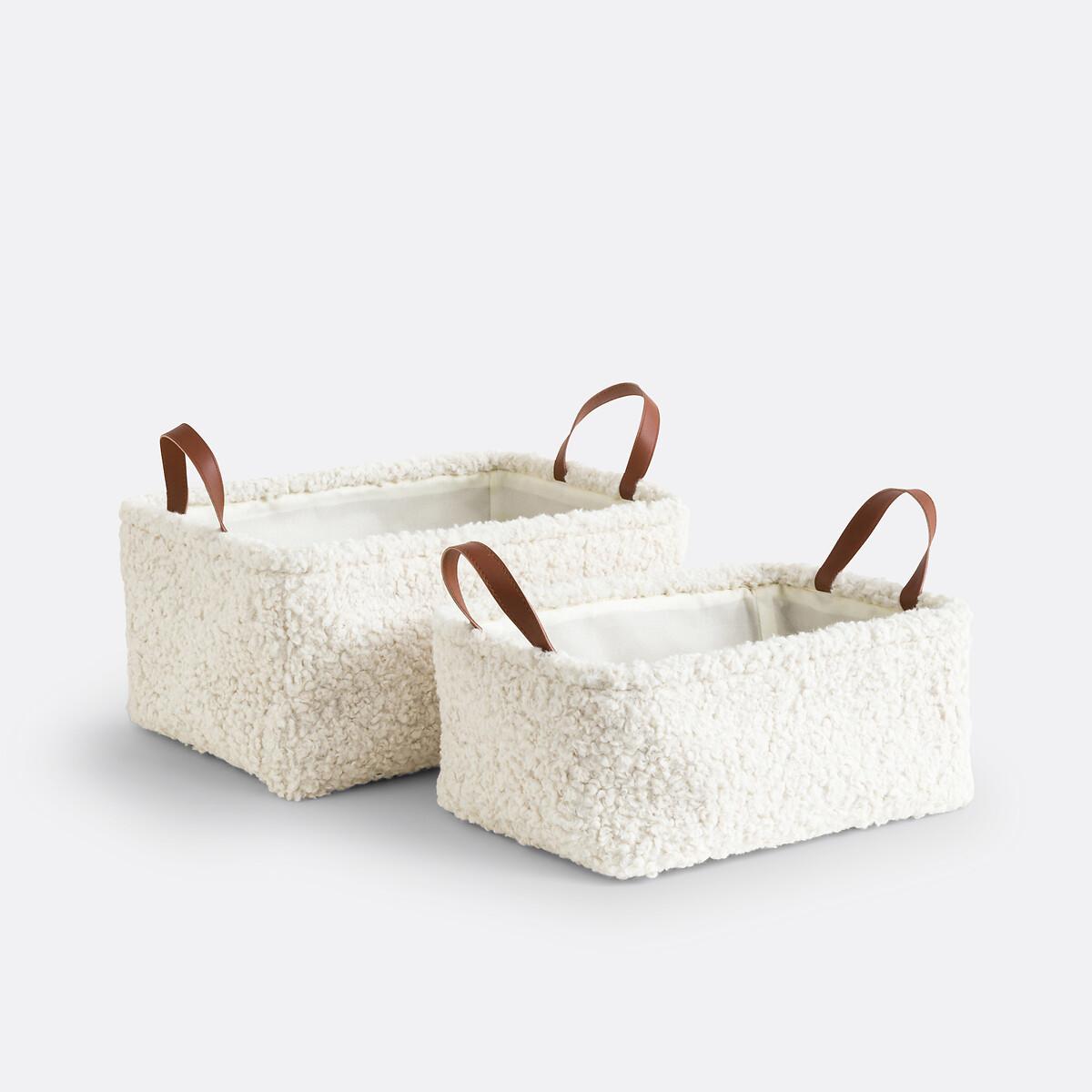 Soft and practical. Boklio loop-finish storage baskets decorate the room with tenderness. Perfect for storing your laundry, clothes or storing everyday accessories. Product Details • Outer cover 100% polyester, terry finish • 100% polyester plain non-woven interior • EVA Structure • 2 polyurethane handles • Sold in packs of 2. Care instructions • Clean with a dry cloth onlyDimensions. Size 1 • Width: 30cm • Height: 20cm • Length: 40cm. Size 2 • Width: 25cm • Width: 25cm • Length: 35cm
