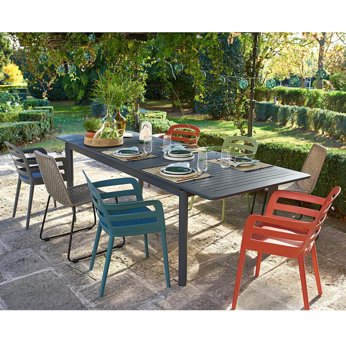 The set of 2 Boston stackable garden armchairs. Perfect design, comfort and easygoing, the Boston garden armchairs are stackable, practical, they can be easily stored at the end of the summer.