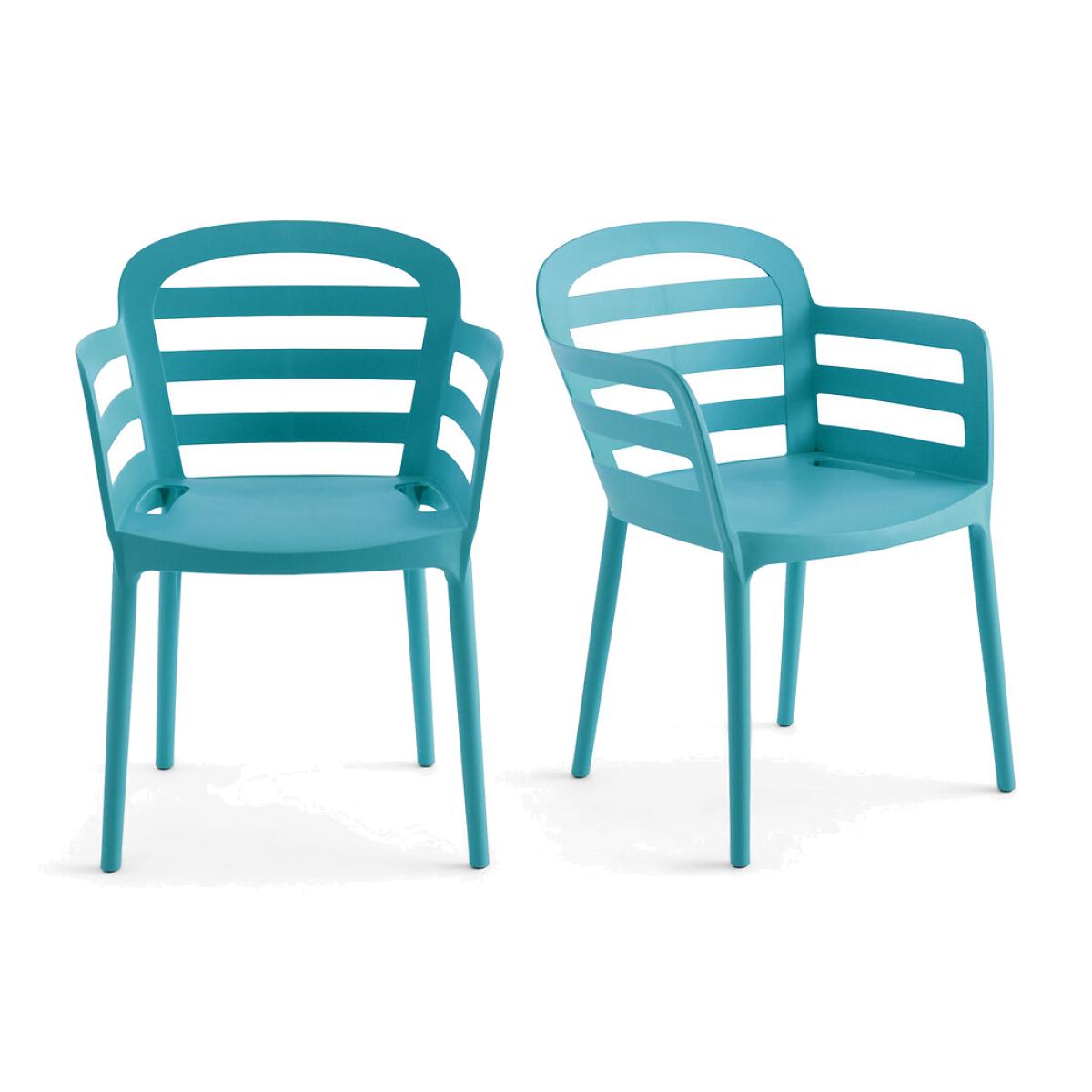 The set of 2 Boston stackable garden armchairs. Perfect design, comfort and easygoing, the Boston garden armchairs are stackable, practical, they can be easily stored at the end of the summer.