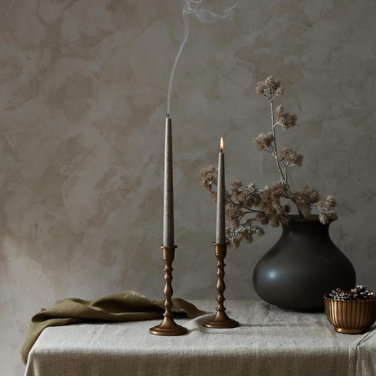 I love these brass effect candlesticks for their versatile, sophisticated look. The matt finish adds a contemporary edge, making them suitable for both modern and traditional interiors. They work particularly well in cosy front rooms, dining areas, or bedroom mantels to create a warm, inviting atmosphere. When styling, try grouping them with other metallic accents or layered candles for a balanced vignette. Practical tip: their understated elegance allows for flexibility-pair with coloured or scented candles for seasonal updates or keep it minimal for year-round chic. They're a great addition to add a touch of understated luxury without overwhelming your space.