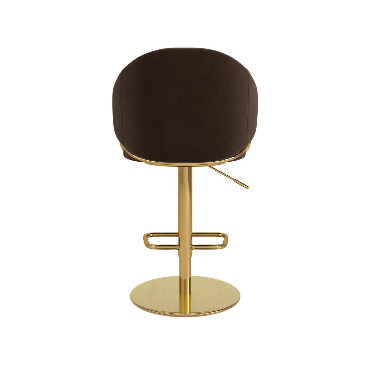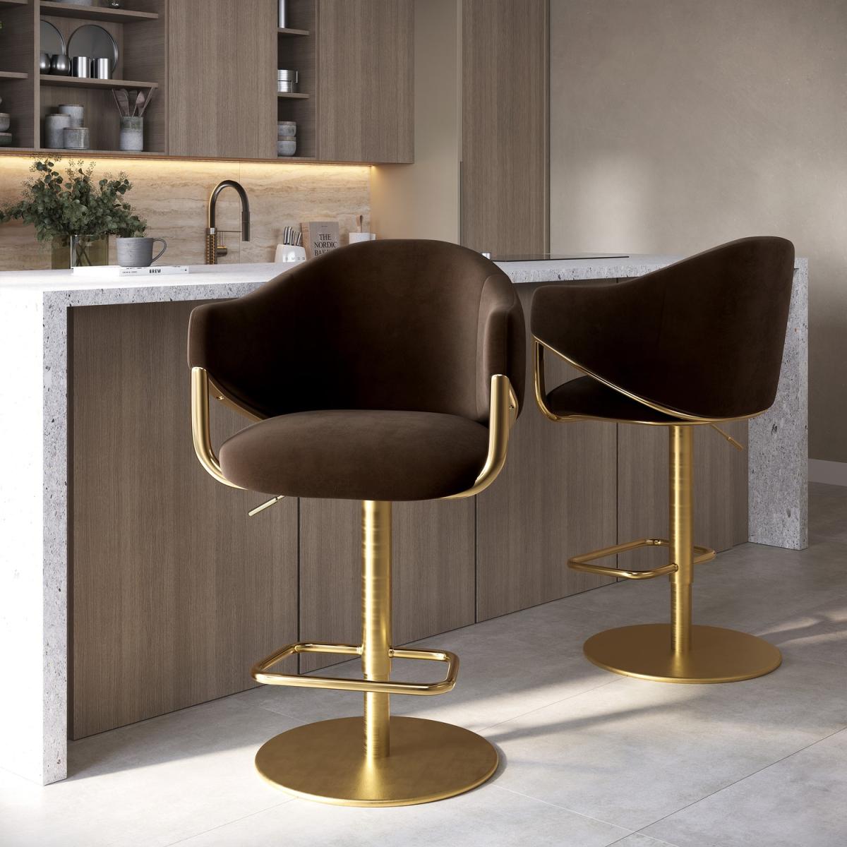 Crafted with soft brown velvet, this barstool adds a warm and elegant touch to any space. Easily adjust the stool’s height with a smooth gas lift to suit different counter or bar levels, ensuring maximum versatility and functionality. Enjoy the convenience of a 360-degree swivel, perfect for socialising or multitasking with ease. The sturdy brushed gold base not only provides excellent stability but also adds a sophisticated, modern aesthetic. The rounded backrest provides extra support, while the footrest offers additional comfort. The Ronnie brown velvet adjustable barstool perfectly blends luxury, functionality, and modern design. Upholstered in soft brown velvet, it instantly elevates the style of your kitchen or bar area. Its brushed gold base brings a contemporary flair, while the adjustable height and 360-degree swivel make it a practical choice for versatile use. Designed for maximum comfort, its supportive backrest ensure you can sit back and relax whether you're enjoying a morning coffee or entertaining guests. Its durable construction guarantees lasting quality, making it a stylish and reliable addition to any home.