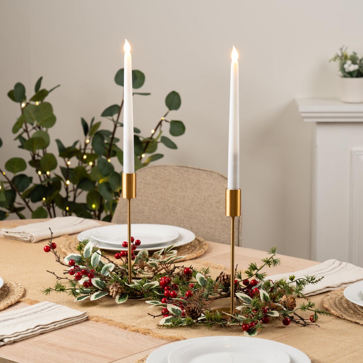 I love these candlestick holders for their sleek brushed gold finish, which adds a touch of sophistication without feeling too ornate. They work particularly well in modern, minimalist, and even transitional interiors, where their clean lines complement both wooden and neutral palettes. Practical styling tips include pairing them with slim tapered candles for a refined look, or mixing with textured elements like woven placemats or linen napkins for warmth. They look especially striking as a centrepiece on a dining table or on a console for a subtle glamour accent. Keep the setting simple to let the gold details really shine.