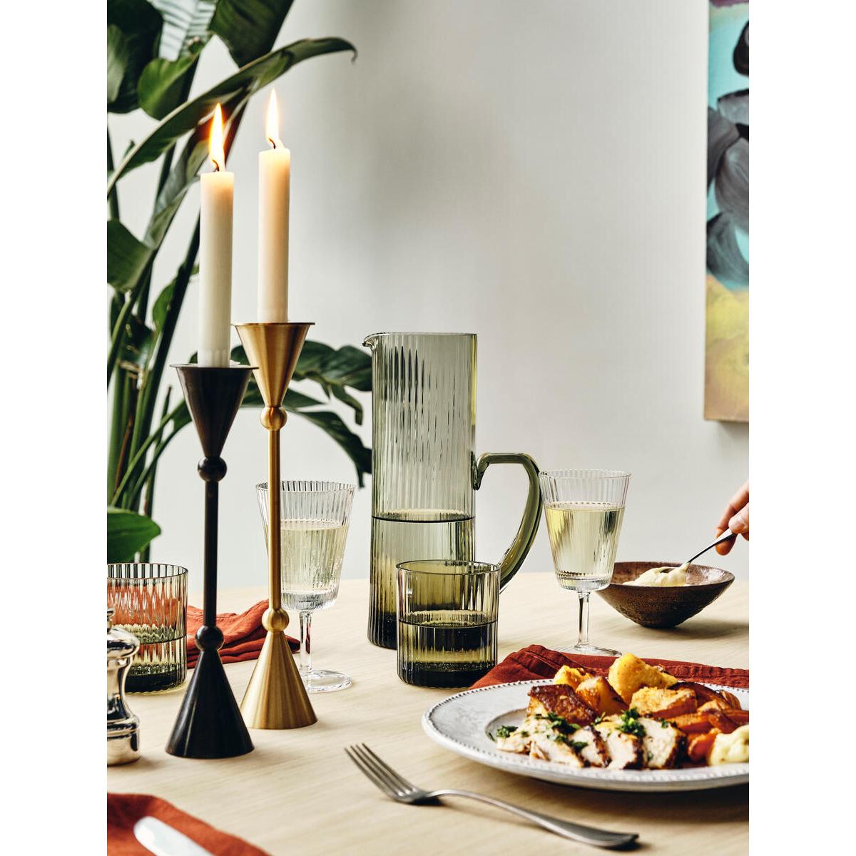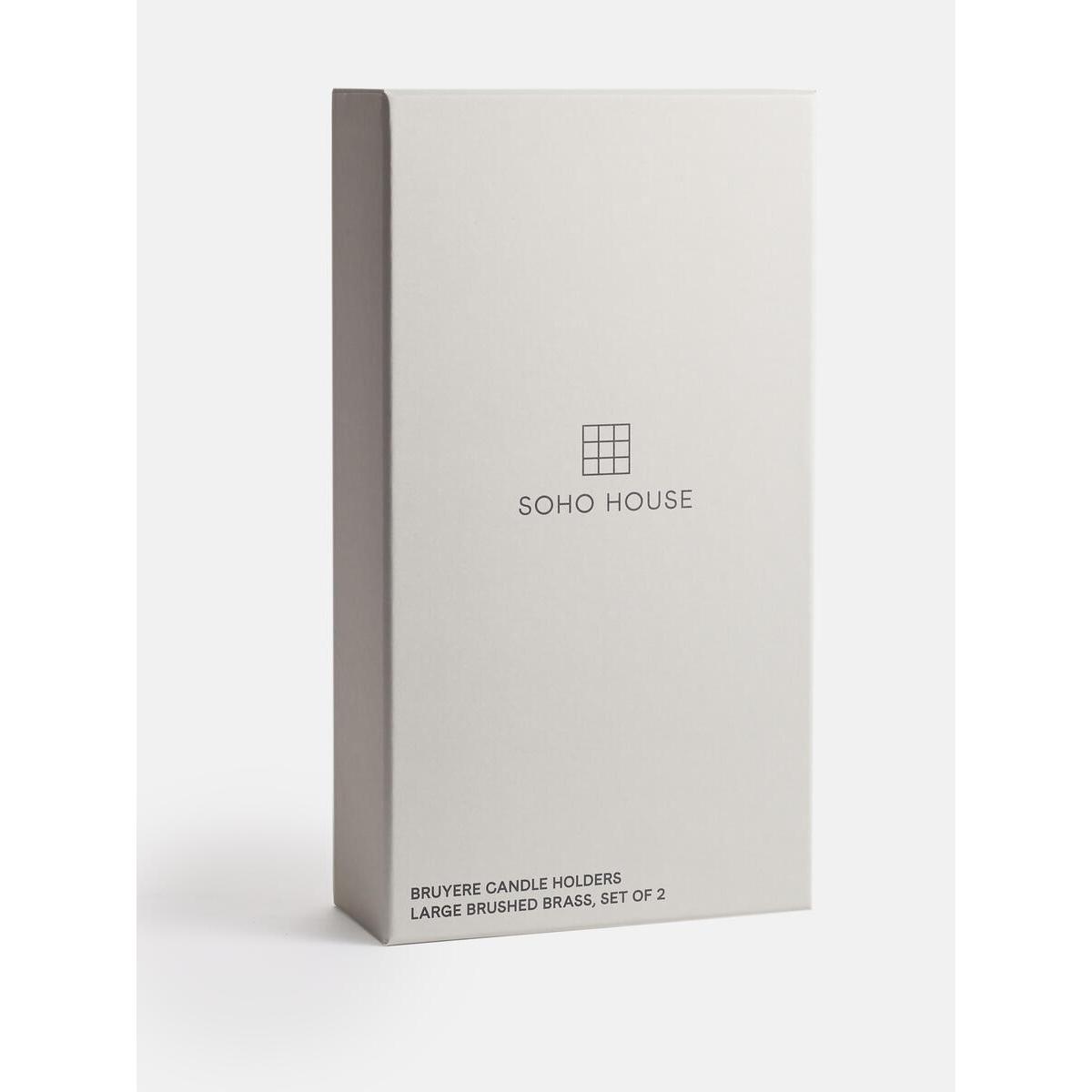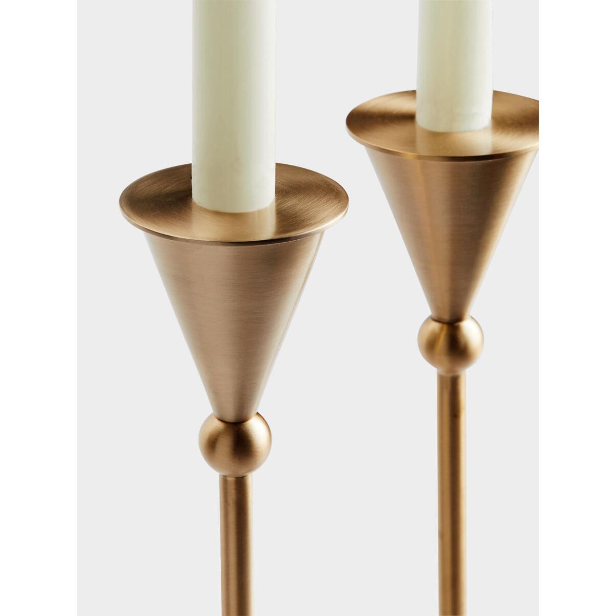 Featuring a slim stem and conical ends, the large Bruyerecandlestick holders draw inspiration from the vintage styles in. White City. Crafted from a high-polished, brushed brass, each onebrings an old-world feel to dinner settings. Inspired by White City House. Set of two large candleholders. Brushed brass and iron. Conical rim. Slim stem.