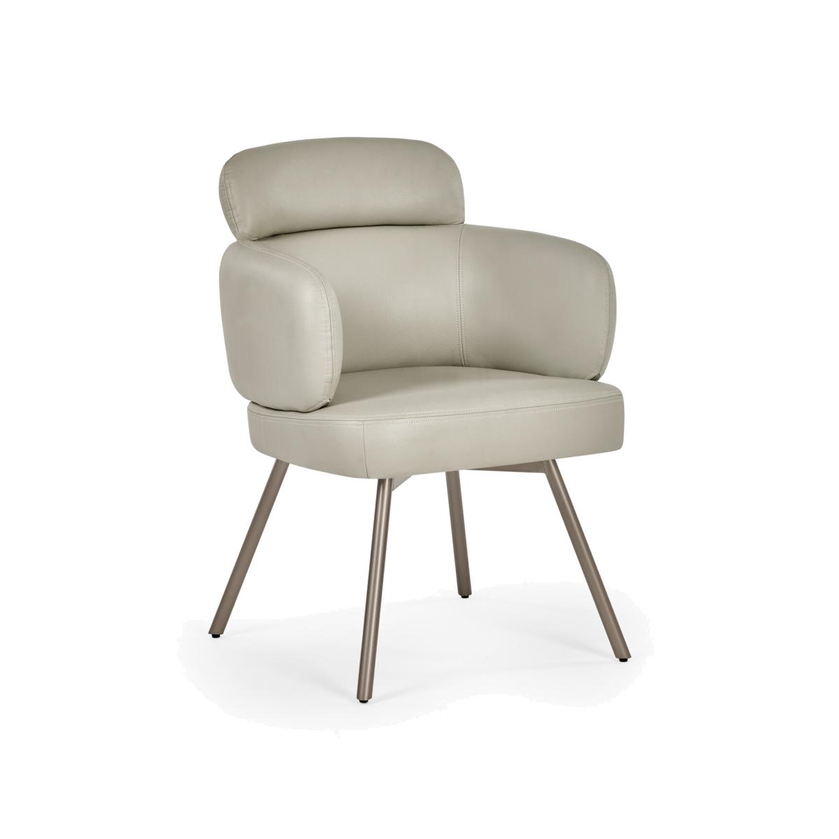 Bring modern comfort and style to your dining space with this set of two swivel dining chairs. Upholstered in soft beige faux leather, each chair features generously padded cushioning, a curved backrest, and padded armrests for all-around support. The 180-degree swivel base with auto-return makes moving in and out effortless, while tapered brushed bronze legs add a sleek, contemporary touch. Stylish, versatile, and practical, this pair is perfect for dining, entertaining, or relaxing, Self assembly required.