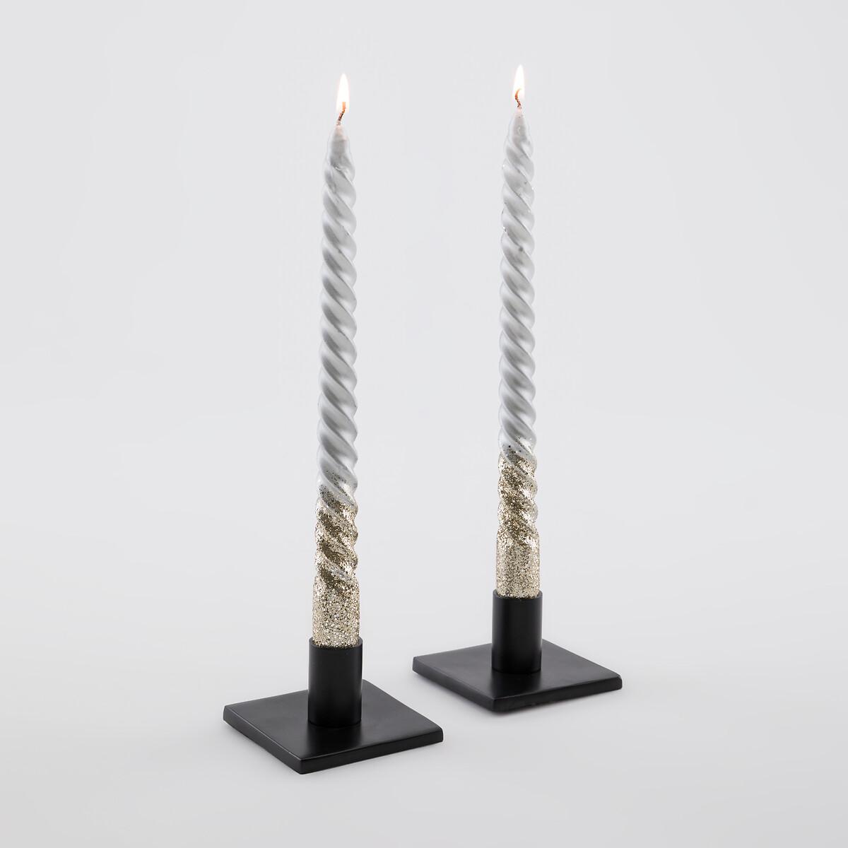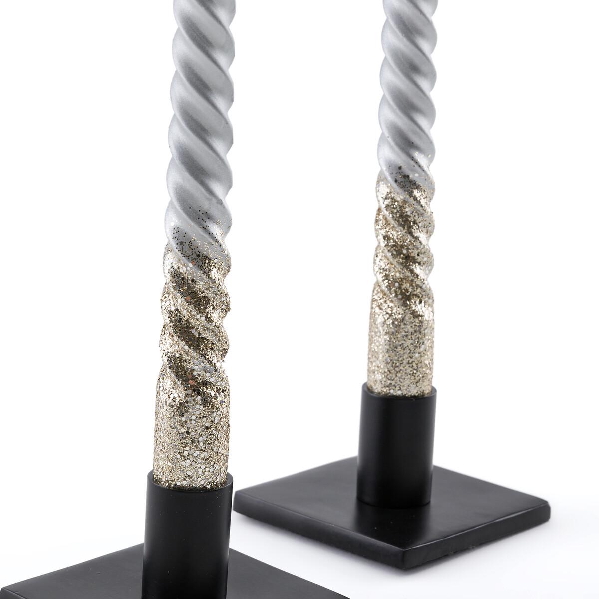 Set of 2 Caspar Glitter Twist Dinner Candles