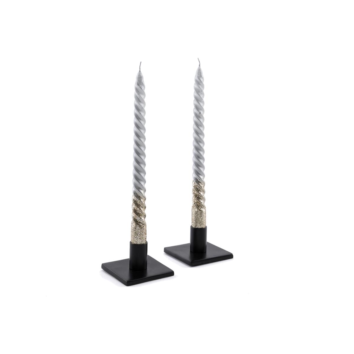 Set of 2 Caspar Glitter Twist Dinner Candles