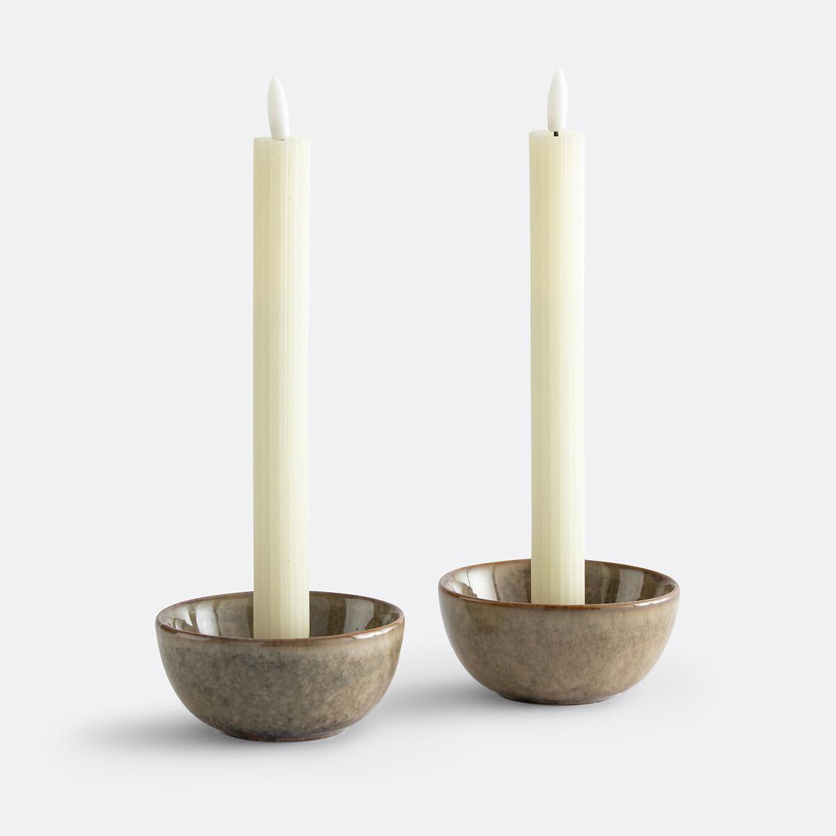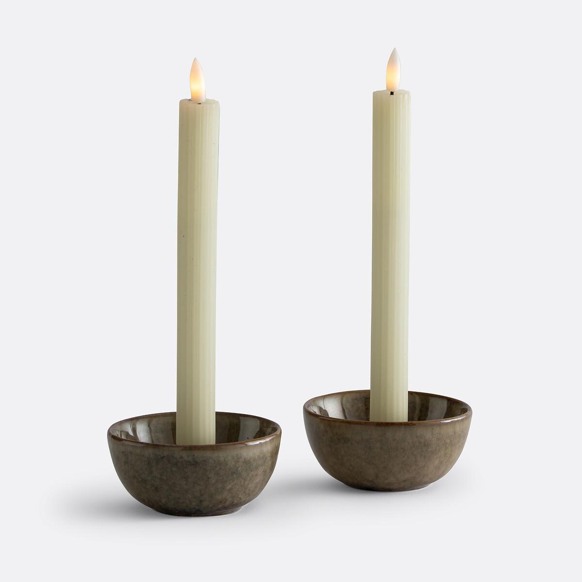 Set of 2 Caspar Ribbed Wax LED Candles