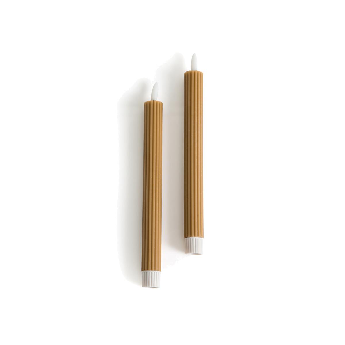Set of 2 Caspar Ribbed Wax LED Candles