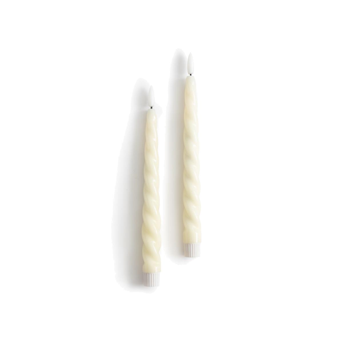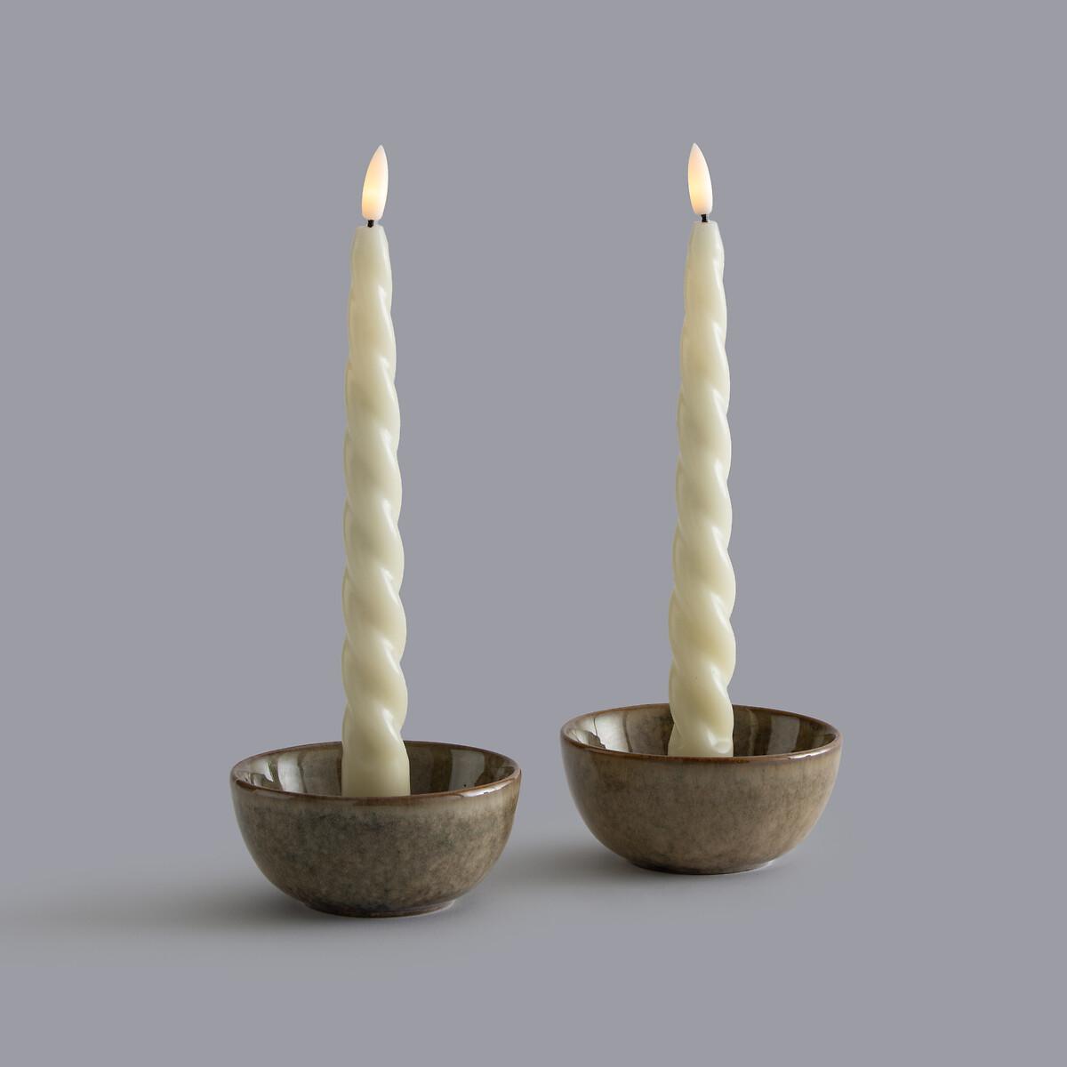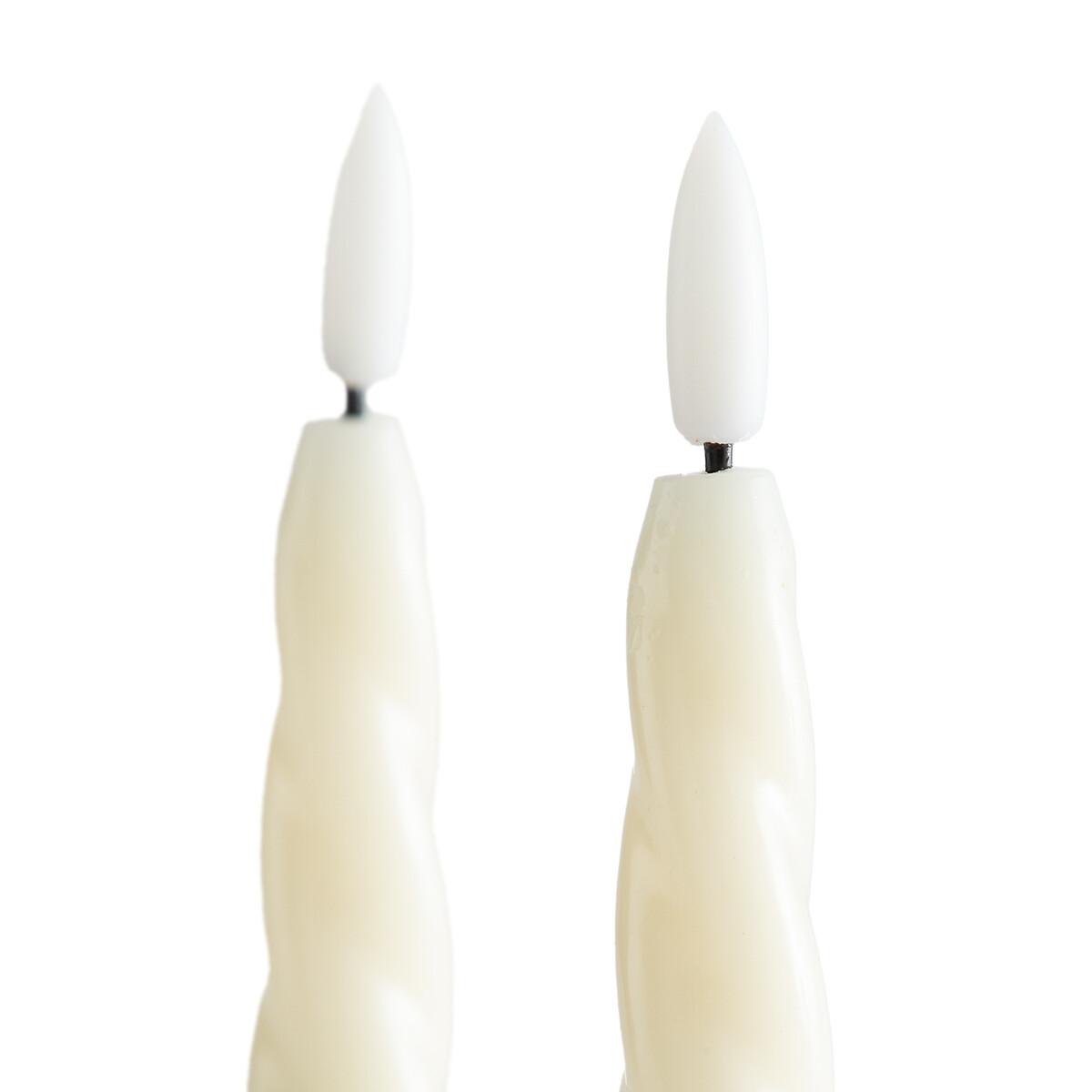 Find relaxation in small moments of simplicity. This LED candle is the decorative element to have at home. Product Details • Twisted wax LED candles • Flickering flame effect • Timer: 6h • Requires 2x AAA batteries (not included) • Sold in packs of 2. Dimensions • Diameter: 2.4cm • Height: 24.5cm