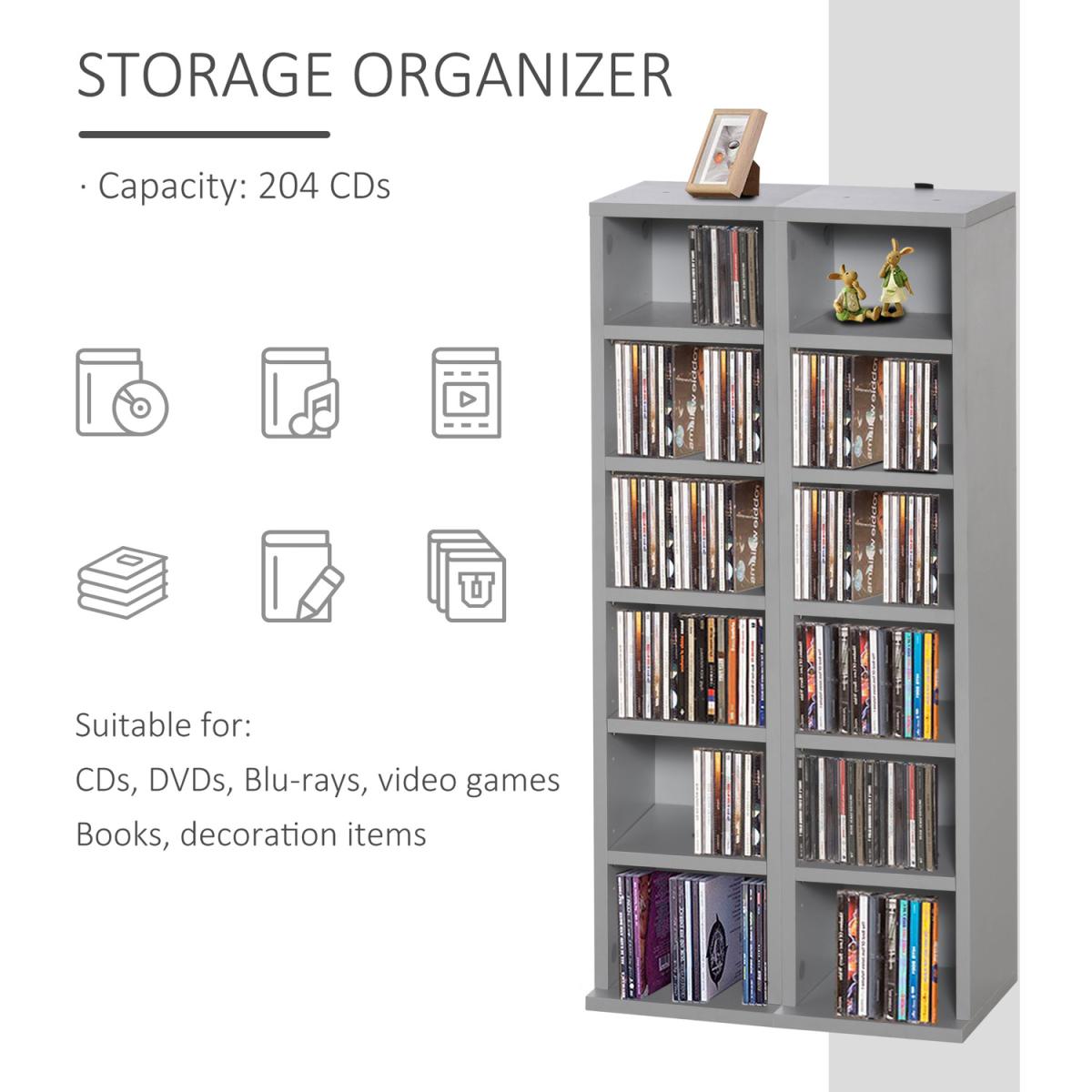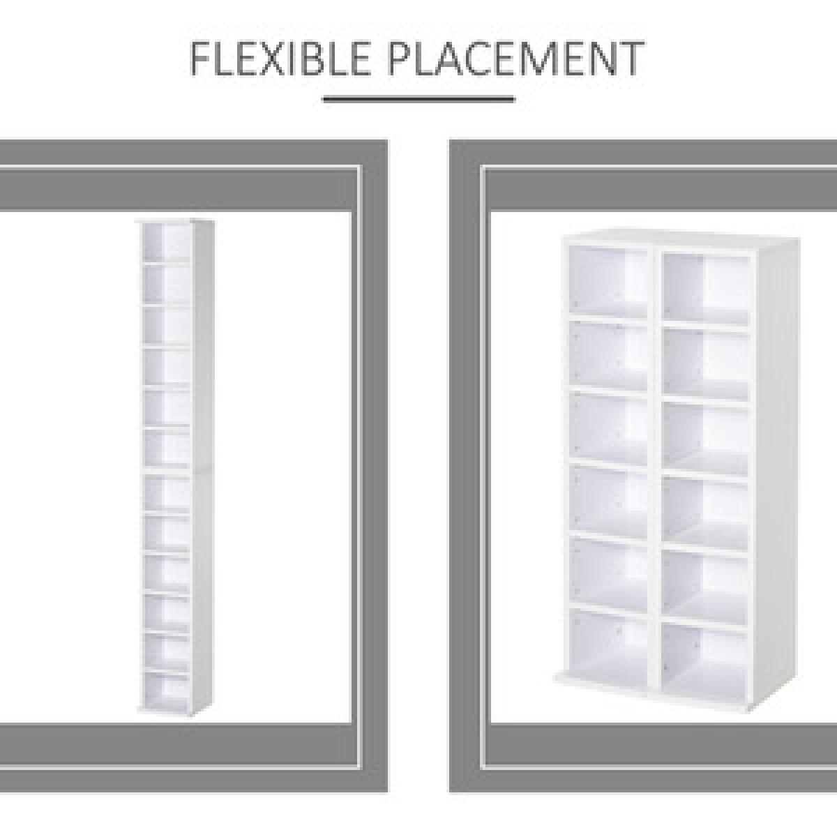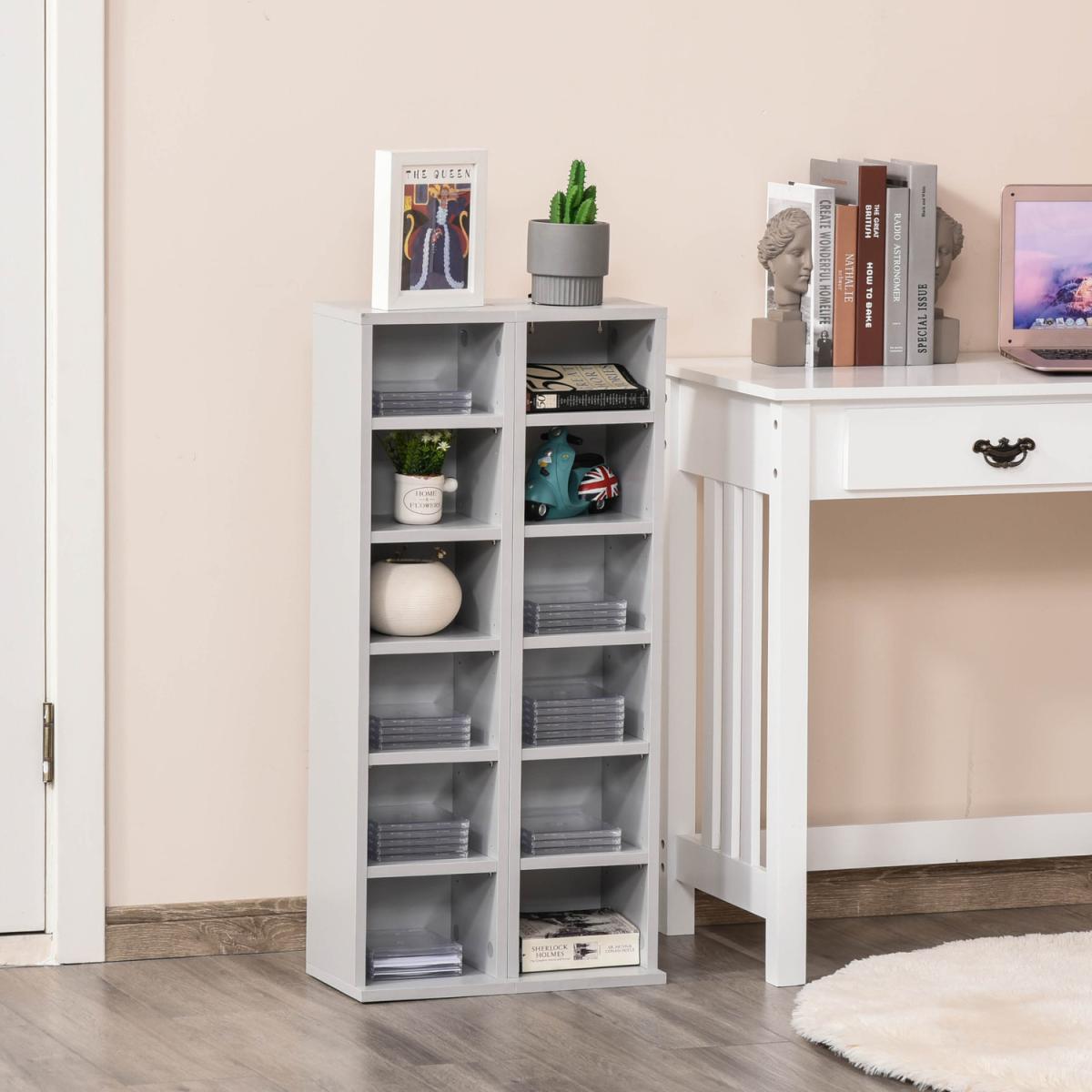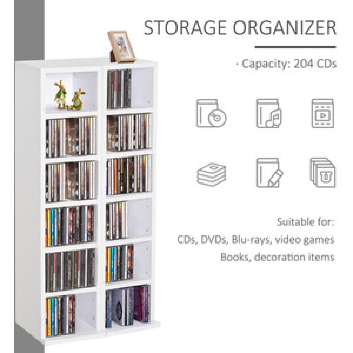 Display your coveted CD, DVD and digital media collection with pride - opt for this set of two shelves from HOMCOM. A six-compartment design, each unit can hold up to 102 CDs, giving you plenty of room for keeping everything together in one place. Made from particleboard, the structure is solid and durable, and comes with wall fixing straps on the back so it doesn't fall over - making it safe for all homes. Each shelf can be adjusted to customise to your organisation needs. It's finished with a large and flat base which keeps the balance. Double the organisation for a tidy and matching home.