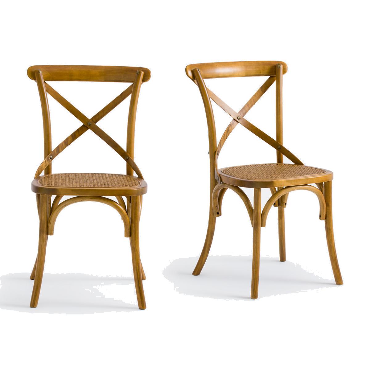 Set of 2 Cedak cross back chairs. Faithful to the Country Craft trend, these chairs combine traditional design with a touch of modern style. Product Details • Curved, crossed chair back • Cane seat • Solid elm with walnut stain for natural version or solid birch for painted version (matt painted) and nitrocellulose lacquer finish • Cane seat (genuine cane work)Dimensions. Overall • Length: 50cm • Height: 88.5cm • Depth: 57cm • Seat: H 46.5cm Delivery:Sold pre-assembled. Available for home delivery. Note! Please check that all access points are large enough to accommodate your delivery (doors, stairs, lifts). Parcel Dimensions: 1 parcel • L62 x H105 x D51cm • 10.2kg