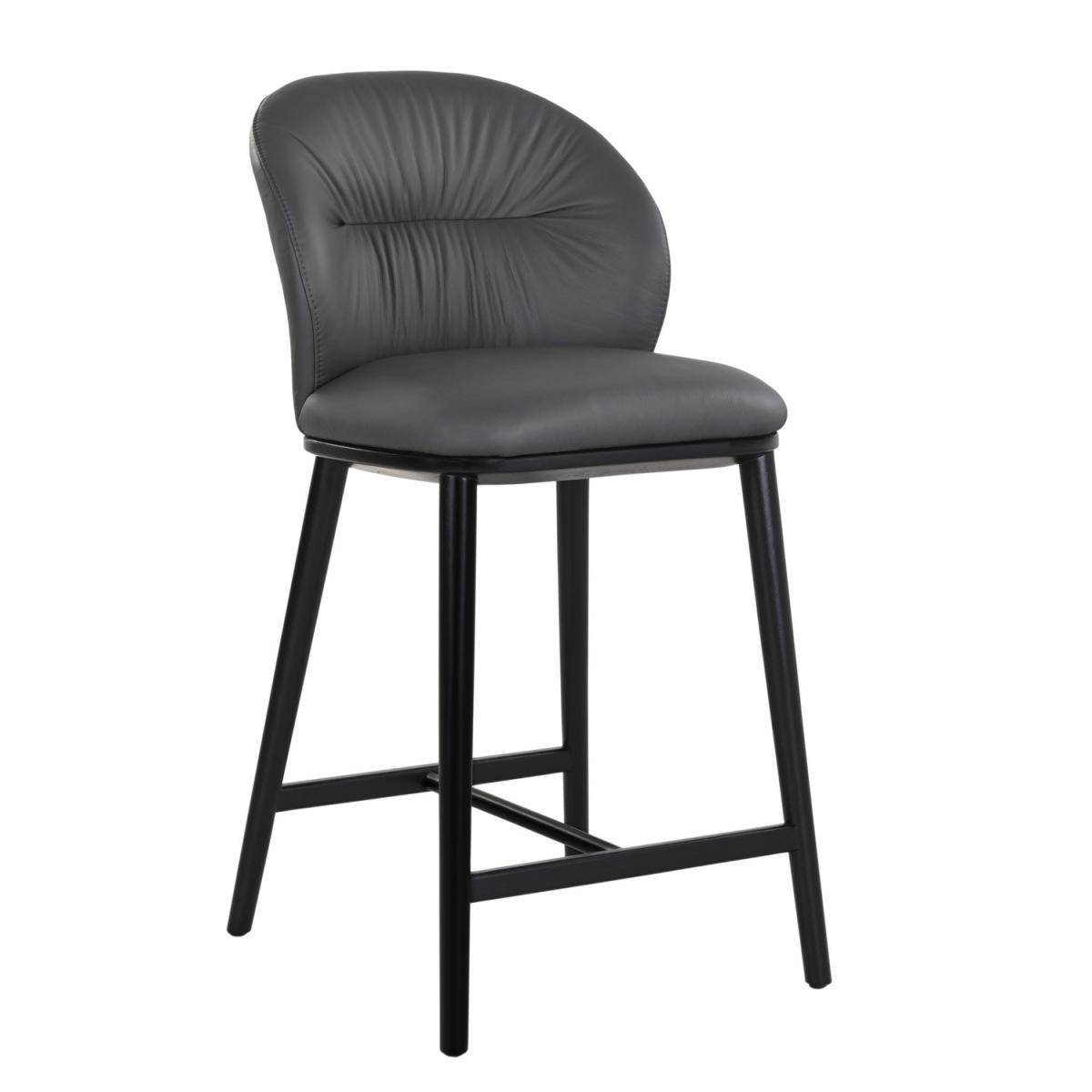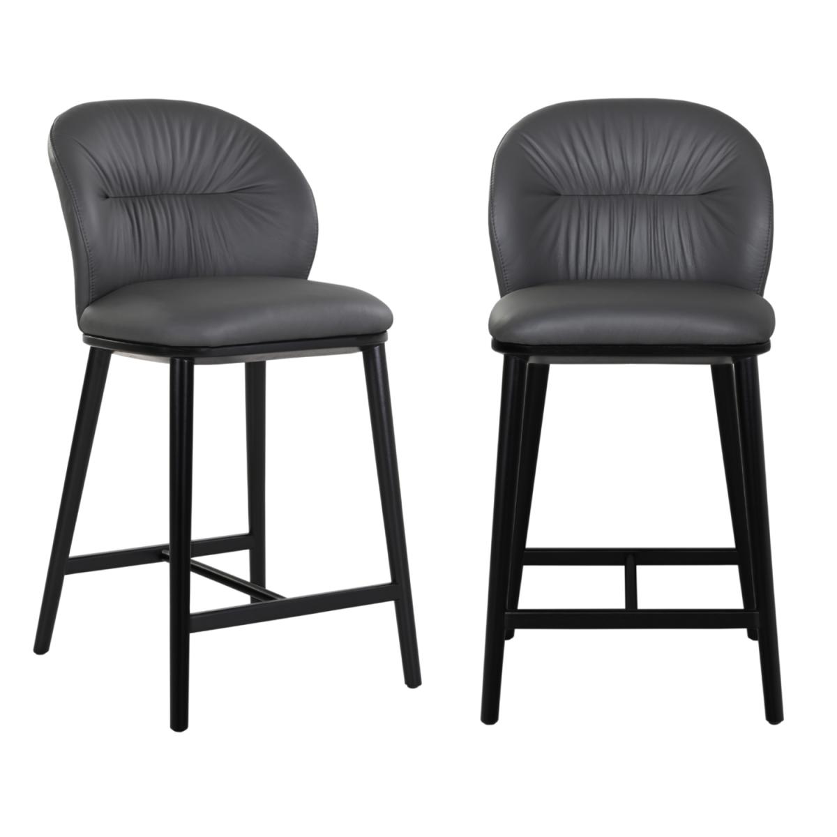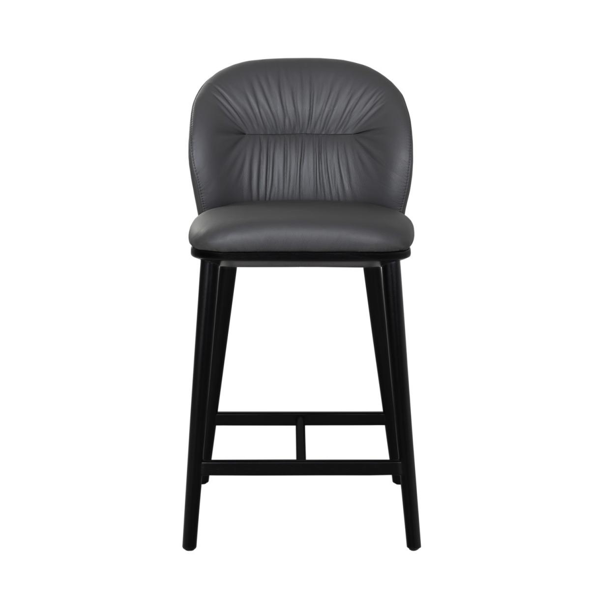 Introduce refined comfort into your kitchen with these charcoal leather stools. Wrapped in real leather, its soft ruched detailing and timeless silhouette exude classic elegance. The seat is generously padded for lasting comfort, while the black painted rubberwood legs deliver durability and style in equal measure. Whether you're sipping your morning coffee or hosting guests at the island, this stool elevates the everyday with its luxurious materials and smart design. A perfect standalone piece or part of a coordinated set, it’s a sophisticated addition to any home.