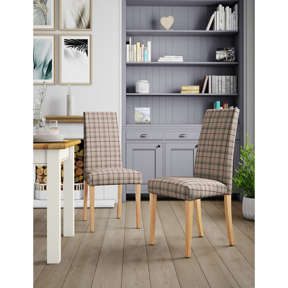 Our check print dining chairs combine a contemporary Parsons silhouette with a plaid fabric pattern in neutral tones to create a warm, timeless effect. Solid beech frame with upholstered seat. Thickly padded for comfort. High curved back with squared-off shape. Made with sustainable wood. We’re so confident our furniture is built to last, our industry-leading guarantee covers any manufacturing failure on all furniture. That’s our promise, and why our furniture comes with a 10-year guarantee that you can trust. Excludes: outdoor furniture and any issues that are a result of normal wear and tear, improper care or accidental damage.