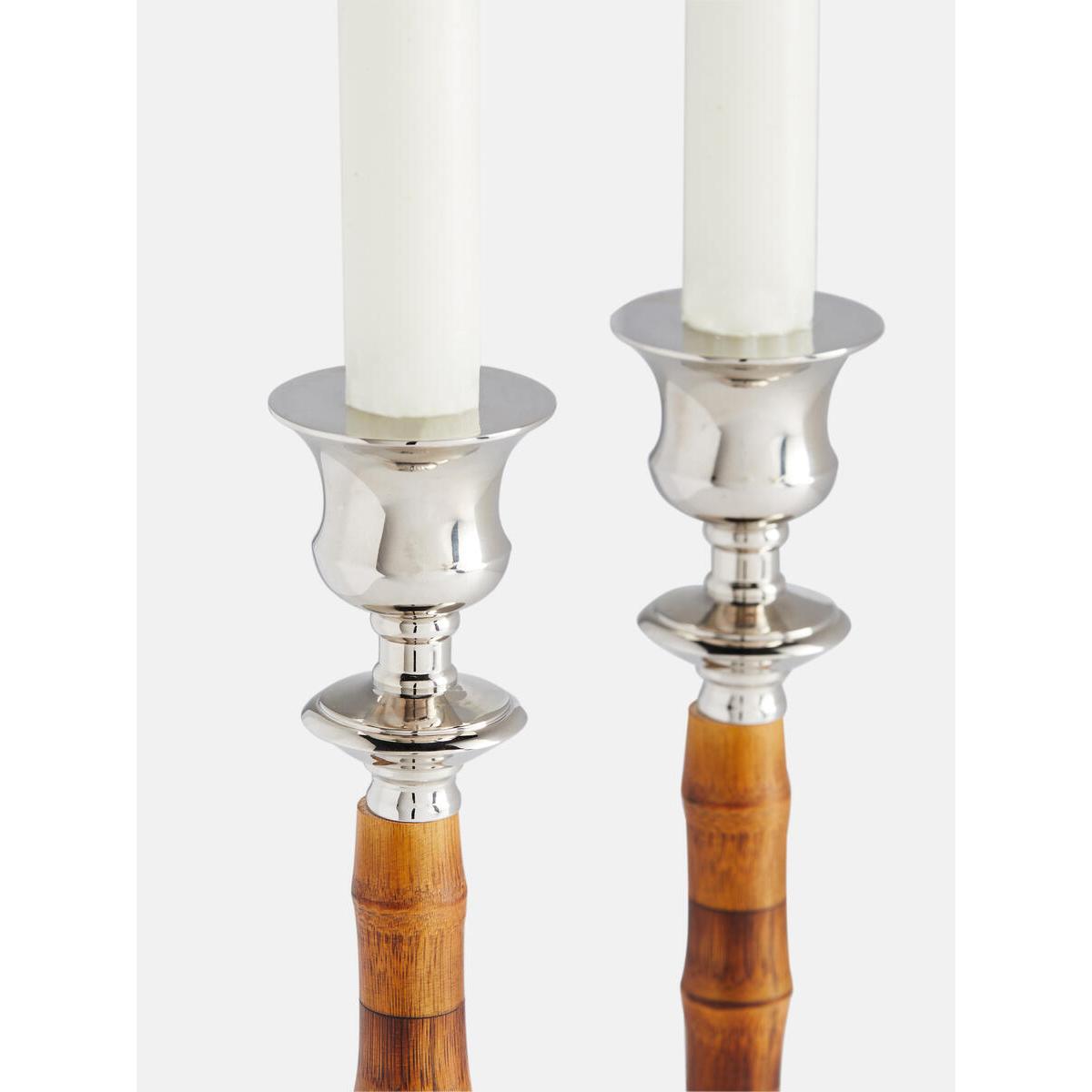 Bring unexpected texture to tables and mantels with the Cheswellcandleholders. Crafted by artisans in India, these candleholdersare formed of natural bamboo and handcrafted nickel-plated brass,which gives each one a unique finish. Fill with tapered dinnercandles to echo the mood of Soho House 40 Greek Street. Inspired by Soho House 40 Greek Street. Set of two small candleholders. Handmade by local artisans in Moradabad, India. Natural bamboo and nickel-plated brass. Colour variances and finish will vary.