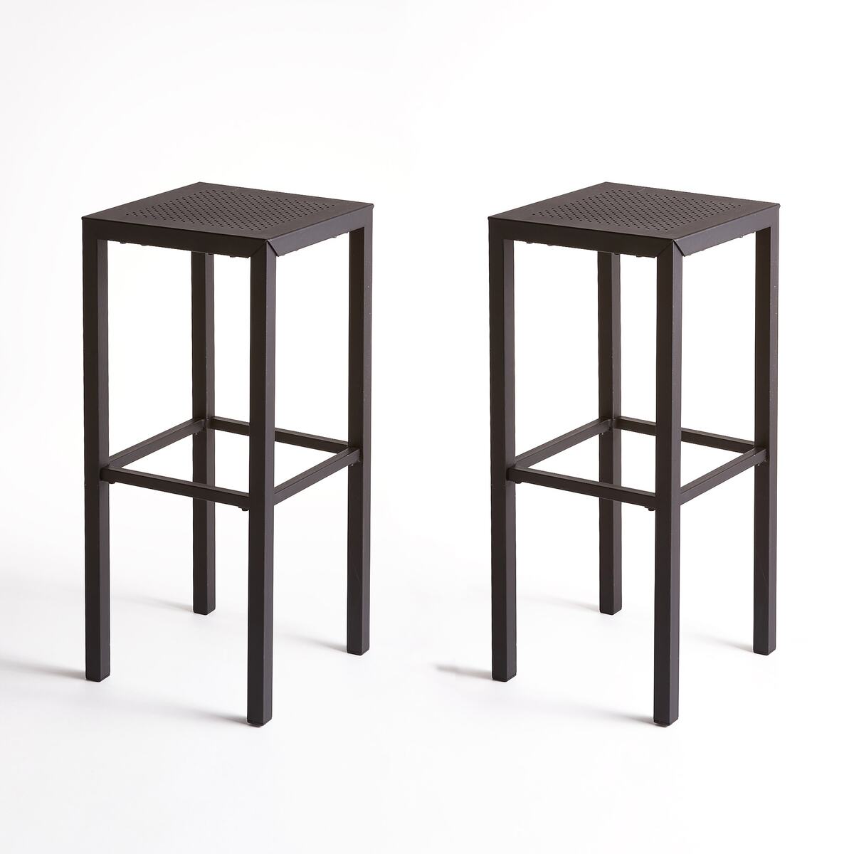 Set of 2 Choe perforated metal bar stools. Metal is still a top pick when it comes to outdoor furniture for your garden or patio. A pared down design for an ultra contemporary look.